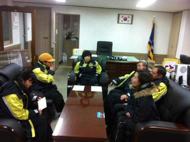 정선여성의용소방대(대장 장순자) 1월 7일 야간대기 근무중에 의용소방대 연합대에서 위문방문을 하였다.