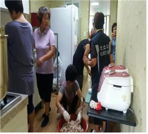 남면여성의용소방대(대장 김수경 외 15명) 8.16.(목) 남면 연봉경로당에서 말복기념 식사대접 봉사활동을 실시하였습니다.