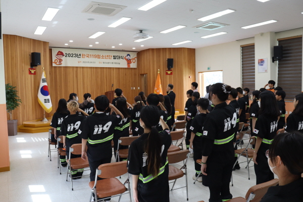 ➤정선소방서(서장 최영수)는 24일 오전 정선소방서 3층 대회의실에서 2023년 한국119청소년단 정선지회 발대식 및 학생긴급통제단 훈련을 개최했다고 밝혔다.