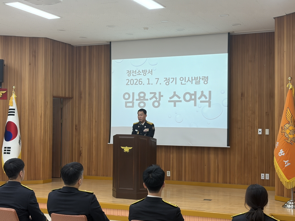 정선소방서(서장 이광섭)가 7일 오전 10시 본서 대회의실에서 2026년 상반기 인사발령에 따른 전입ㆍ승진ㆍ전보자 임용장 수여식을 개최했다.