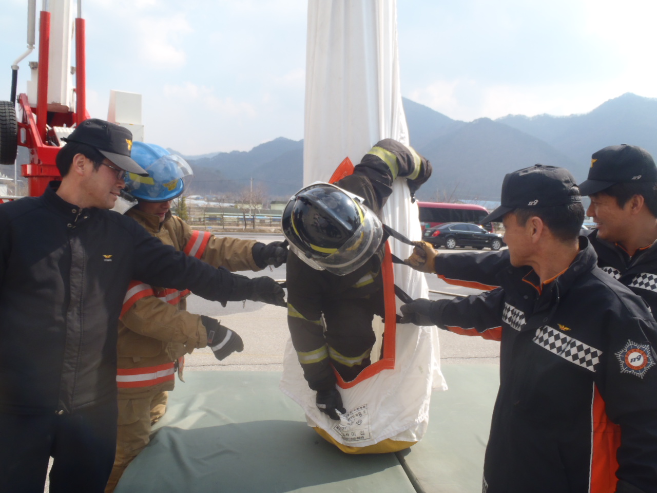 내용으로는 고층건물에 대한 화재발생시 소화전과 소방차,고가굴절차를 연결 소화용수를 확보하고, 46미터 높이의 고층건물의 소화훈련과 구조대를 통한 요구조자의 대피훈련을 숙달하였다.