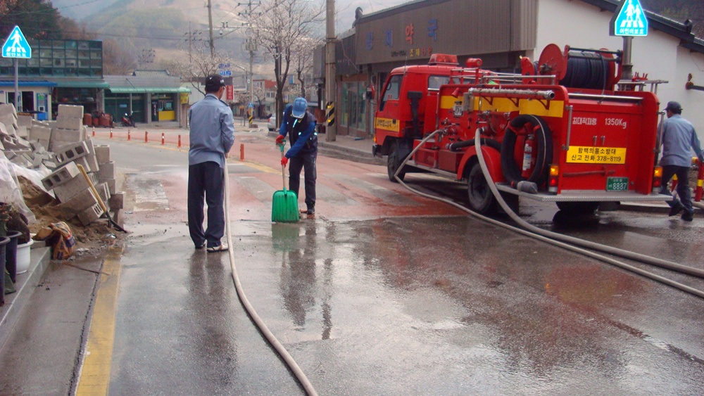정선소방서 함백의용소방대(대장 김현하)는 1일 신동읍 조동리 일원에서 오는 16일부터 19일까지 4일간 개최하는 ‘정선군 곤드레 산나물 축제’의 성공적인 개최와 관광객들에게 청결하고 깨끗한 이미지를 심어주고자 물청소를 겸한 대청소를 실시하였습니다.
