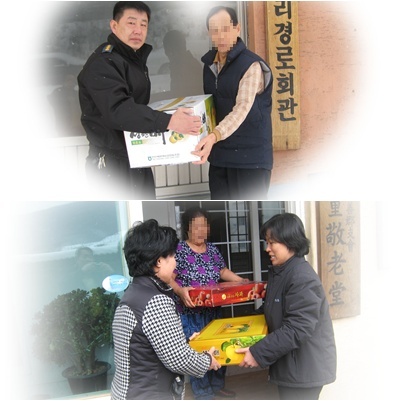 전달물품 : 사과 2상자, 배 2상자