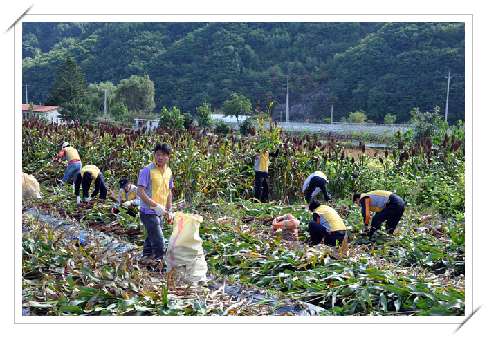 정선소방서(서장 정승진)는 2010.10.08. 자체 봉사활동 조직인 119참아리회원 15명이 정선군 북평면 문곡리 독거노인 가구를 방문하여 수수 수확으로 부족한 농촌 일손돕기에 앞장섰습니다.