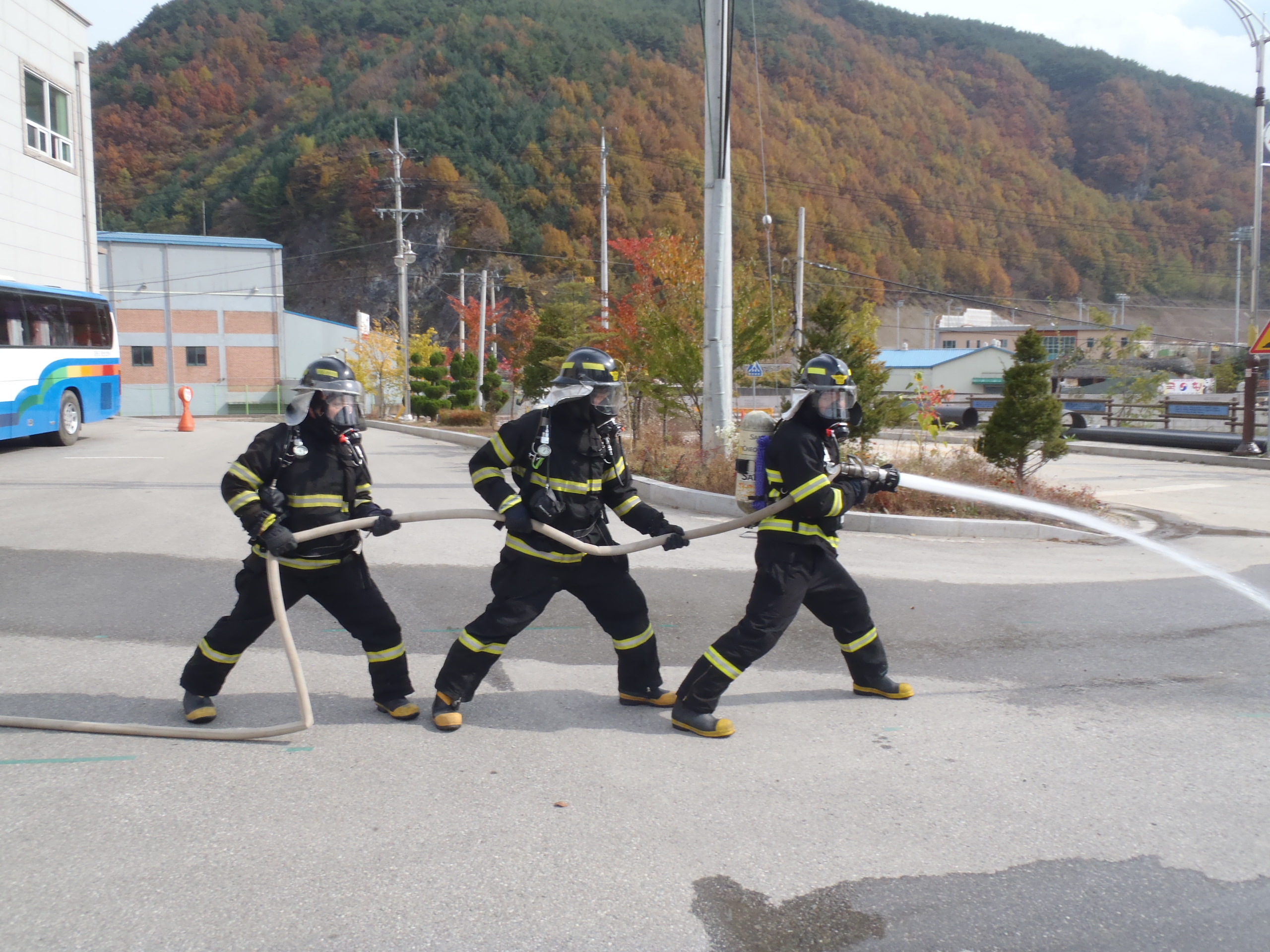 2011.10.24(월) 정선센터는 현장에서 강한 소방관 만들기를 위한 화재진압조법 3인 및 4인조법을 실시하였습니다..^^