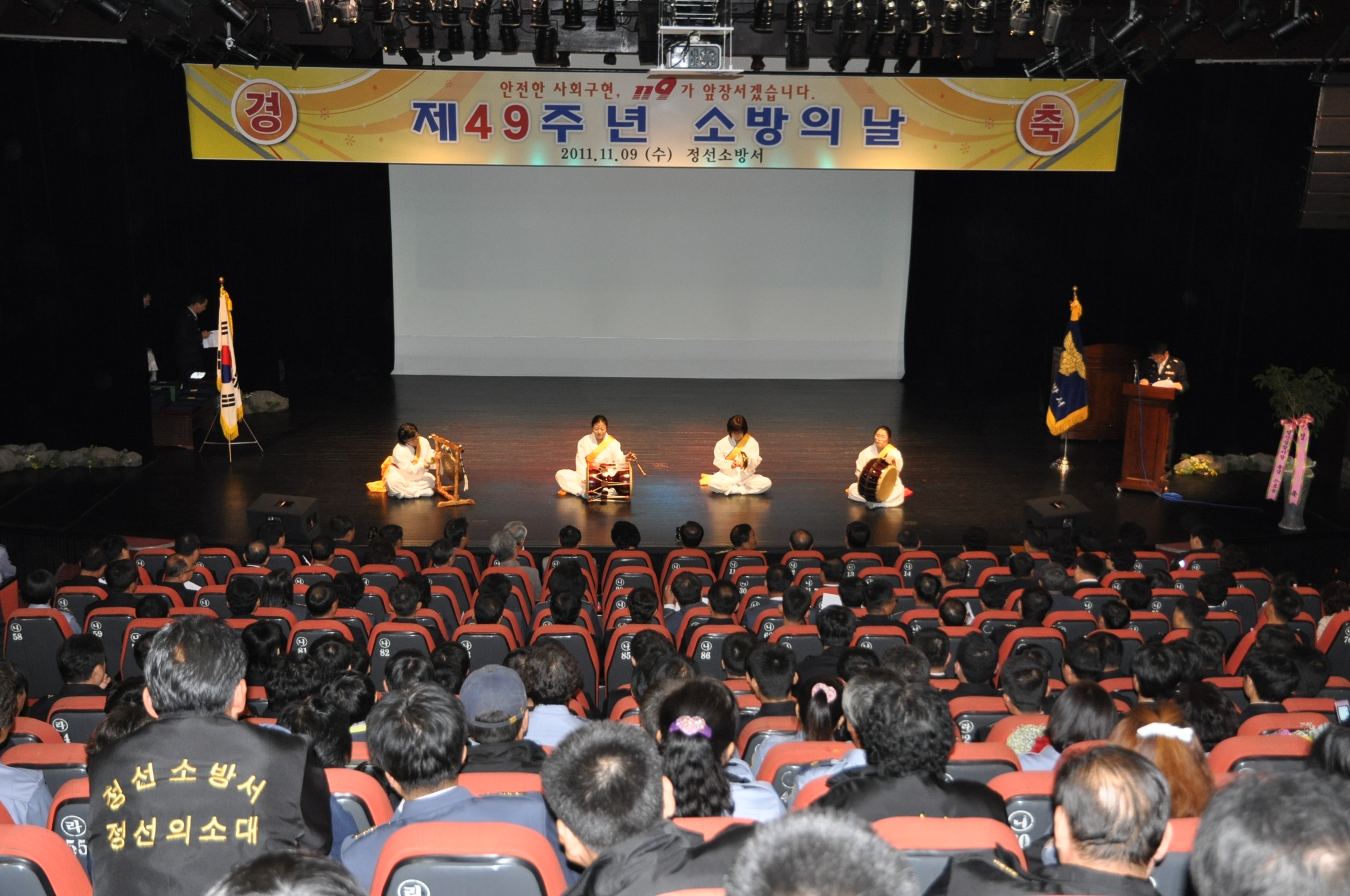 정선소방서(서장 박창진)는 11월 9일 오전 10시 정선군 문화예술회관 3층 대공연장에서 주요내빈, 소방공무원, 의용소방대원 등 400여명이 참석한 가운데 “제49주년 소방의 날” 기념행사를 가졌습니다.
