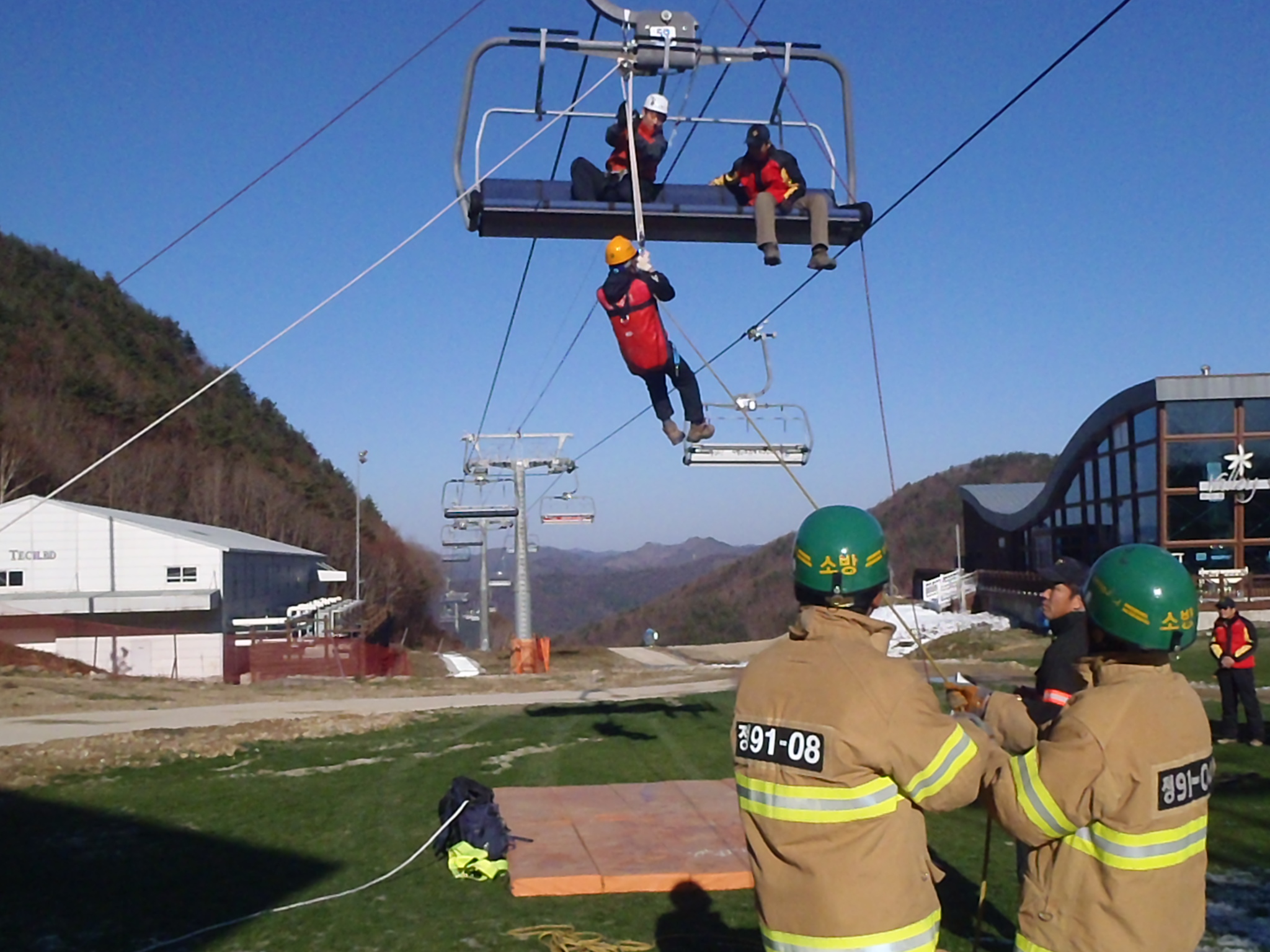 정선소방서(서장 박창진) 119 구조대는 11.15. 오후 13시부터 15시까지 정선 하이원 스키장에서 2011년 안전사고 대비 스키장 리프트 사고 인명구조 훈련을 실시 했습니다. 이날 훈련에는 하이원스키장 패트롤 팀 및 관계자 40여명과 119구조대장 권병국 외 8명이 참석하여 스키장 리프트 정지사고시 요구조자 구출시범을 보였습니다. 다가오는 겨울철 레포츠 의 꽃 스키 강원도의 가장 큰 손님 맞이를 할수 있는 최종 마무리를 지은것 같아 모두들 뿌듯하고 기쁜 마음으로 훈련을 마치고 돌아왔습니다.