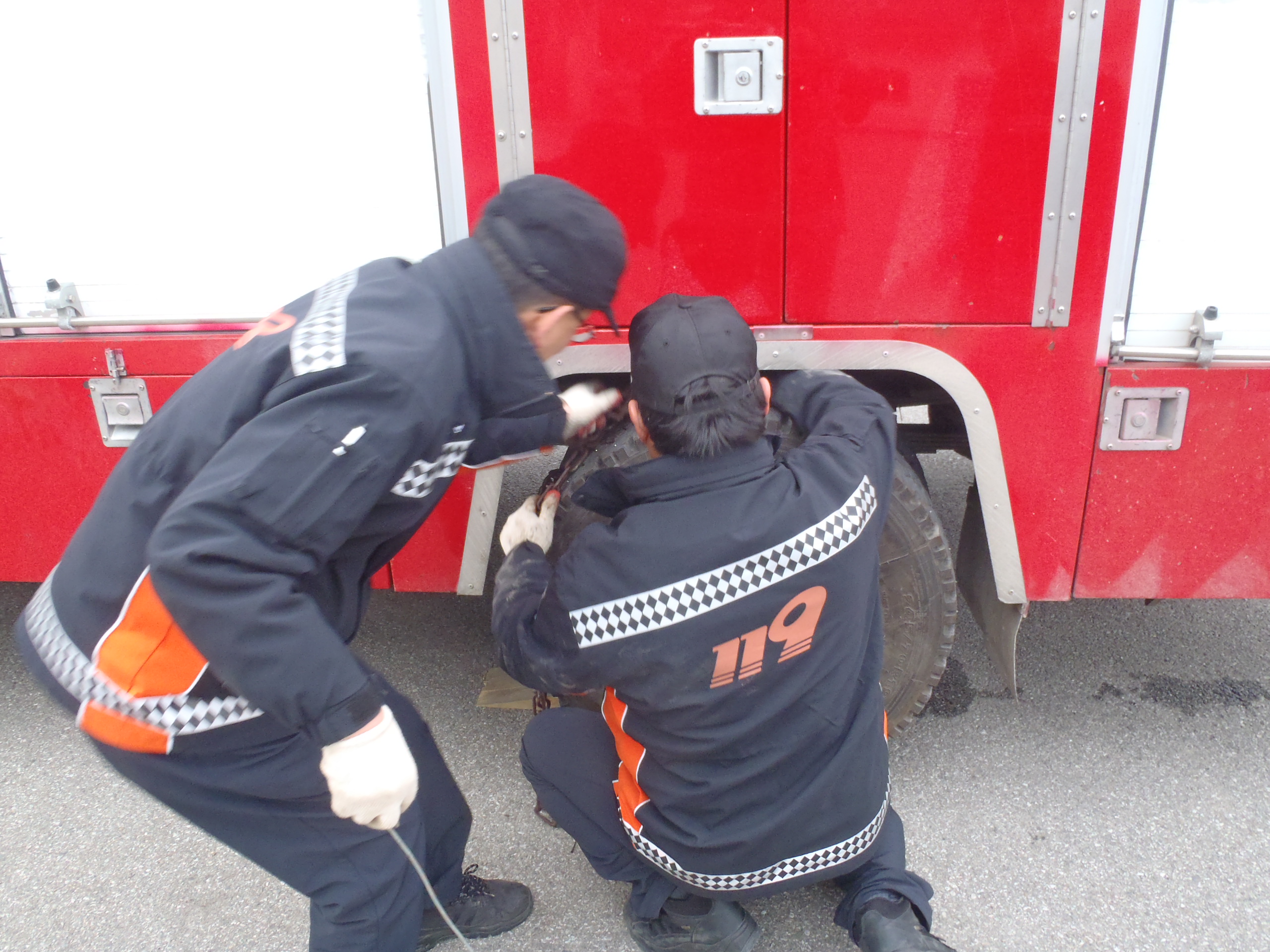 정선소방서(서장 박창진) 정선119안전센터에서는 겨울철 폭설에 대비하여 안전하고 신속한 출동을 위한 월동장구장비 점검 및 각 차량별 체인 장착 훈련을 실시하였습니다.
