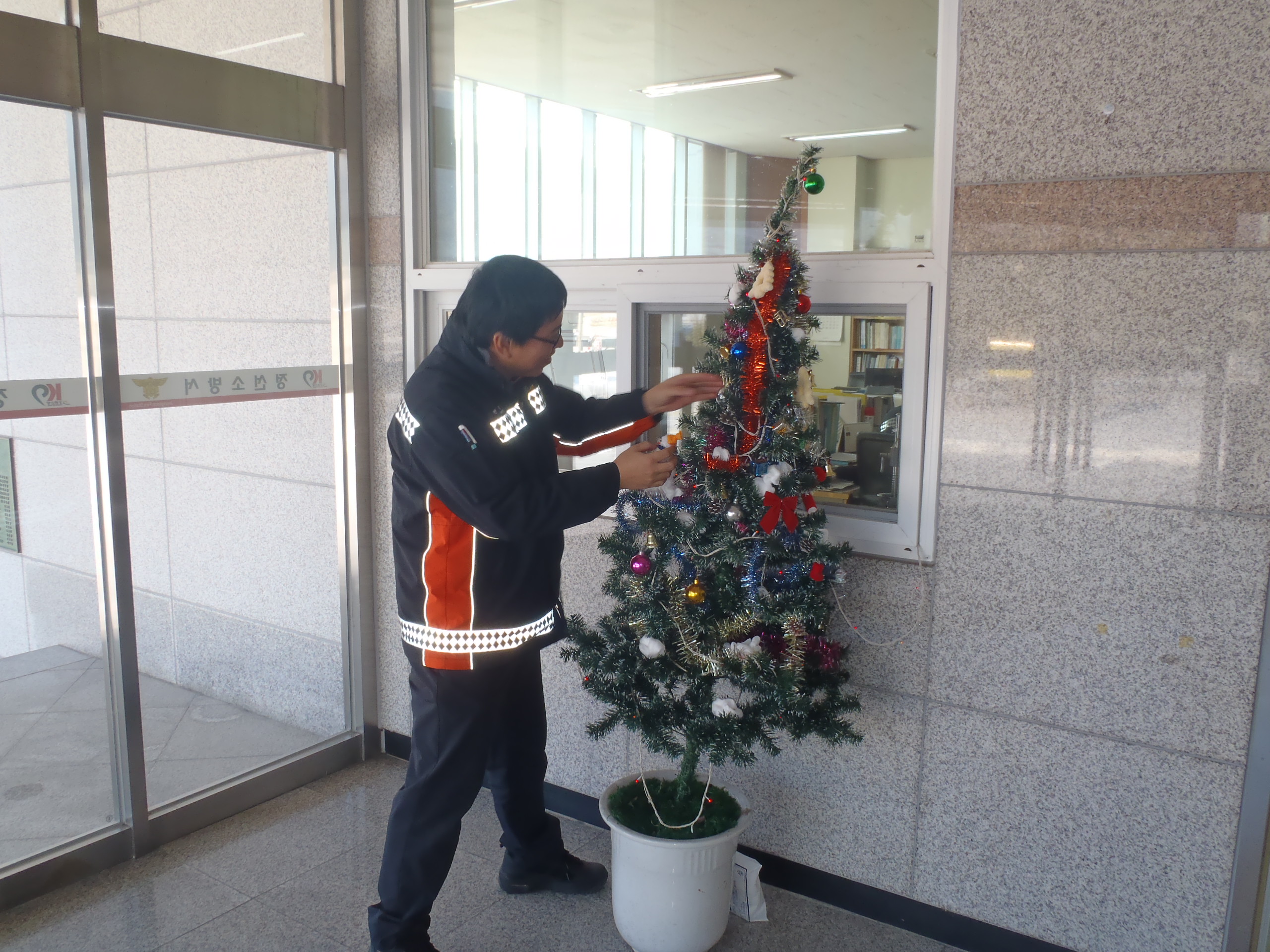 정선소방서(서장 박창진)정선119안전센터에서는 크리스마스 이브를 맞이하여 소박하지만 성탄절 기분을 느낄 수 있도록 크리스마스 트리를 만들었습니다. 크리스마스에도 열심히 일하시는 소방공무원 여러분들 모두모두 메리 크리스마스~~^^.