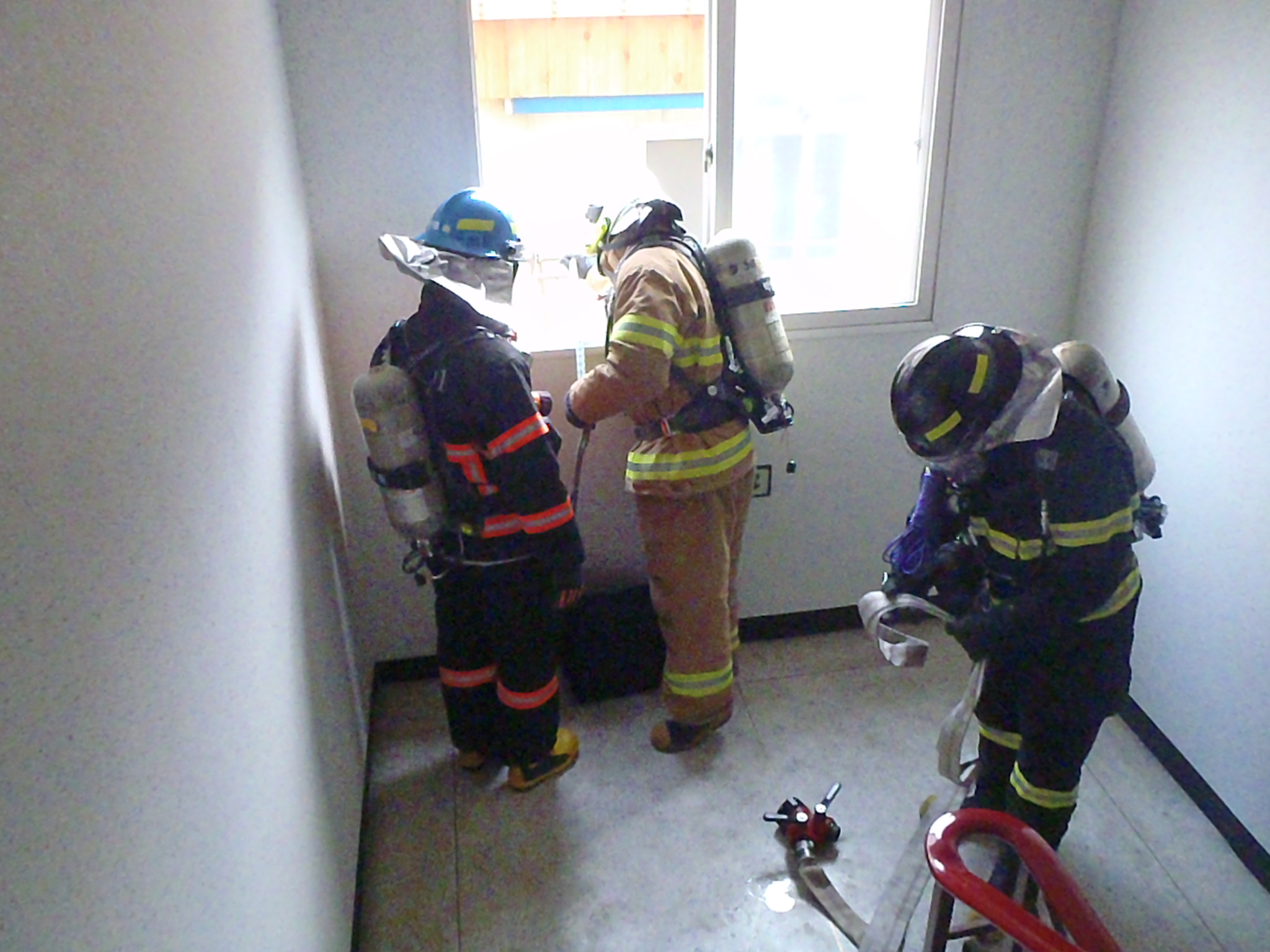 정선소방서(서장 박창진) 119 구조대는 정선센터와 함께 정선읍에 있는 현대아파트 현지적응 훈련에 임하였습니다. 이번 훈련은 고층건물내 옥내소화전 불량 및 고장으로 인한 기능장애시 외부에서 신속하게 응급조치후 화재진압하는 상황을 가정하여 실시하였습니다. 평소 현지적응훈련을 통해 많은 경험과 기술을 익혀 현장활동시 안전하고 확실한 대응으로 국민의 재산과 생명을 보호할수 있도록 정선소방서 대원들은 불철주야 최선을 다하겠습니다. 정선소방서 파이팅~!