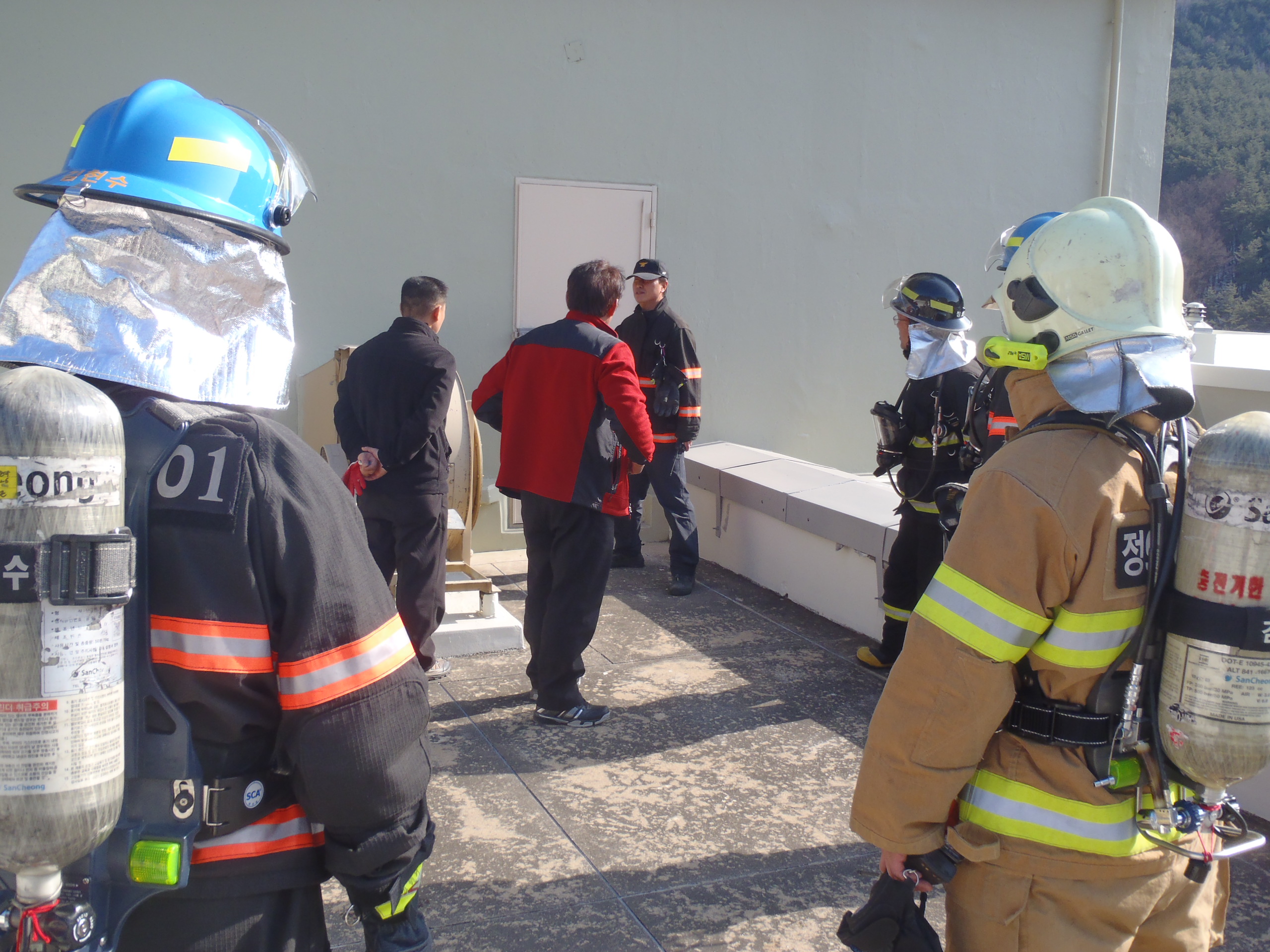 정선소방서(서장 박창진)정선 119안전센터에서는 현대아파트 적응훈련중 제연설비 중요성 및 관리요령에 대하여 관계자들에게 설명하고 옥상층 비상구 관리상황(연기감지기 및 관리소에서 수동제어)에 대하여 격려하였습니다.