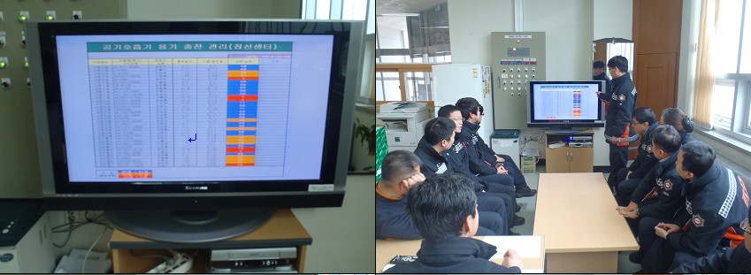정선소방서(서장 박창진) 정선119안전센터에서는 센터 내 설치 된 PDP TV모니터를 활용하여 출동대 편성확인, 업무인수인계 및 공기호흡기 충전기한을 확인하는 용도로 사용해 업무의 질을 높이고 변하는 시대에 맞쳐 변해가는 소방인이 되고자 합니다.