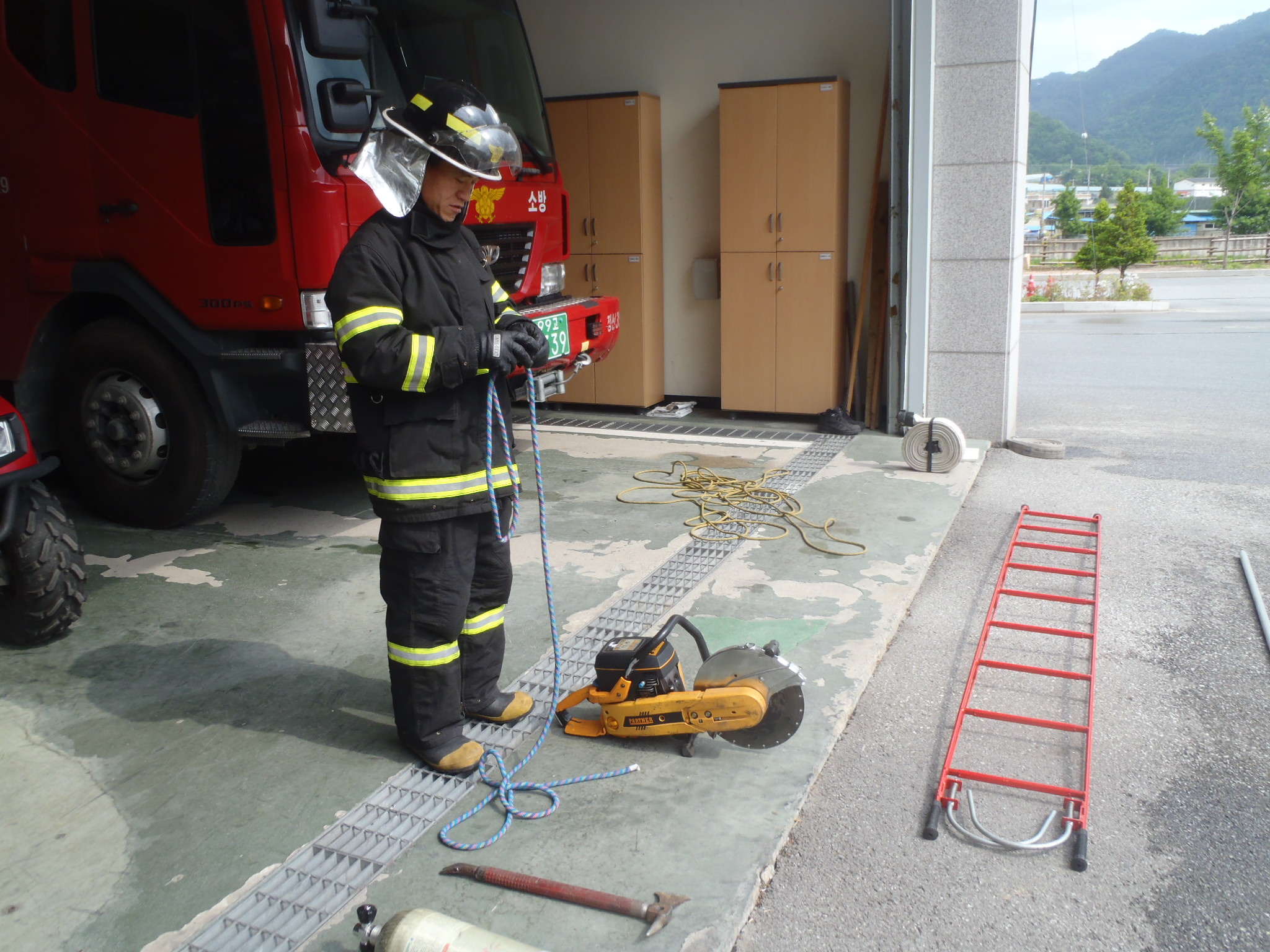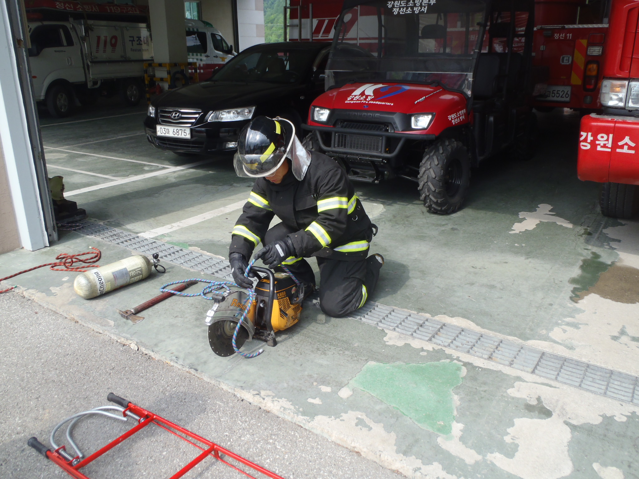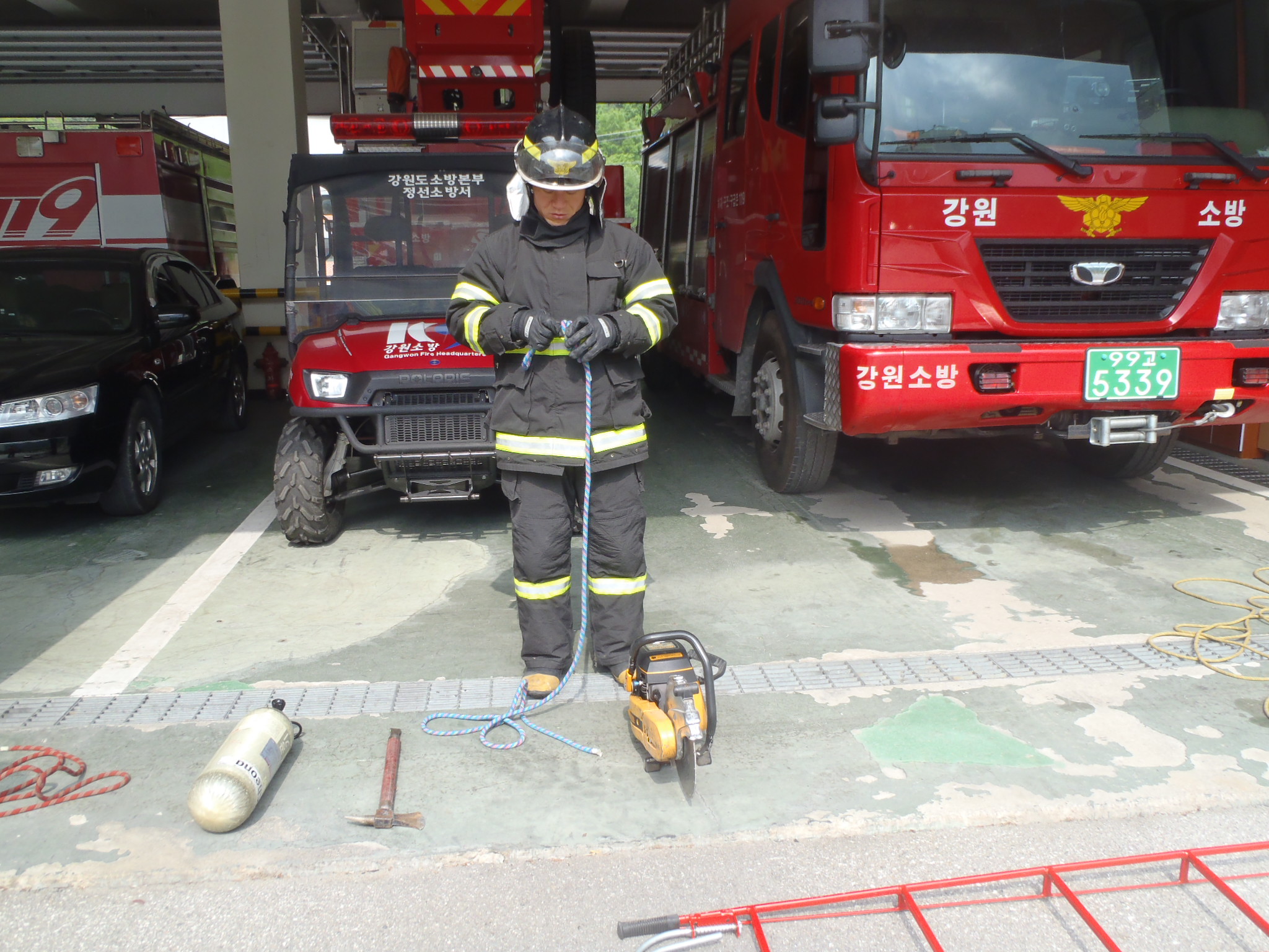 정선소방서 (서장 박창진) 119구조대는 금일 소방서 차고에서 화재진화사 2급자격증 실기시험을 대비하여 훈련을 실시했습니다. 이번훈련을 통하여 실기시험 당일에는 보다 능숙하고 여유롭게 시험에 응시하여 좋은 결과를 얻었으면 하는 바람입니다. 수험생 분들 모두 파이팅~! 입니다. ~~^^
