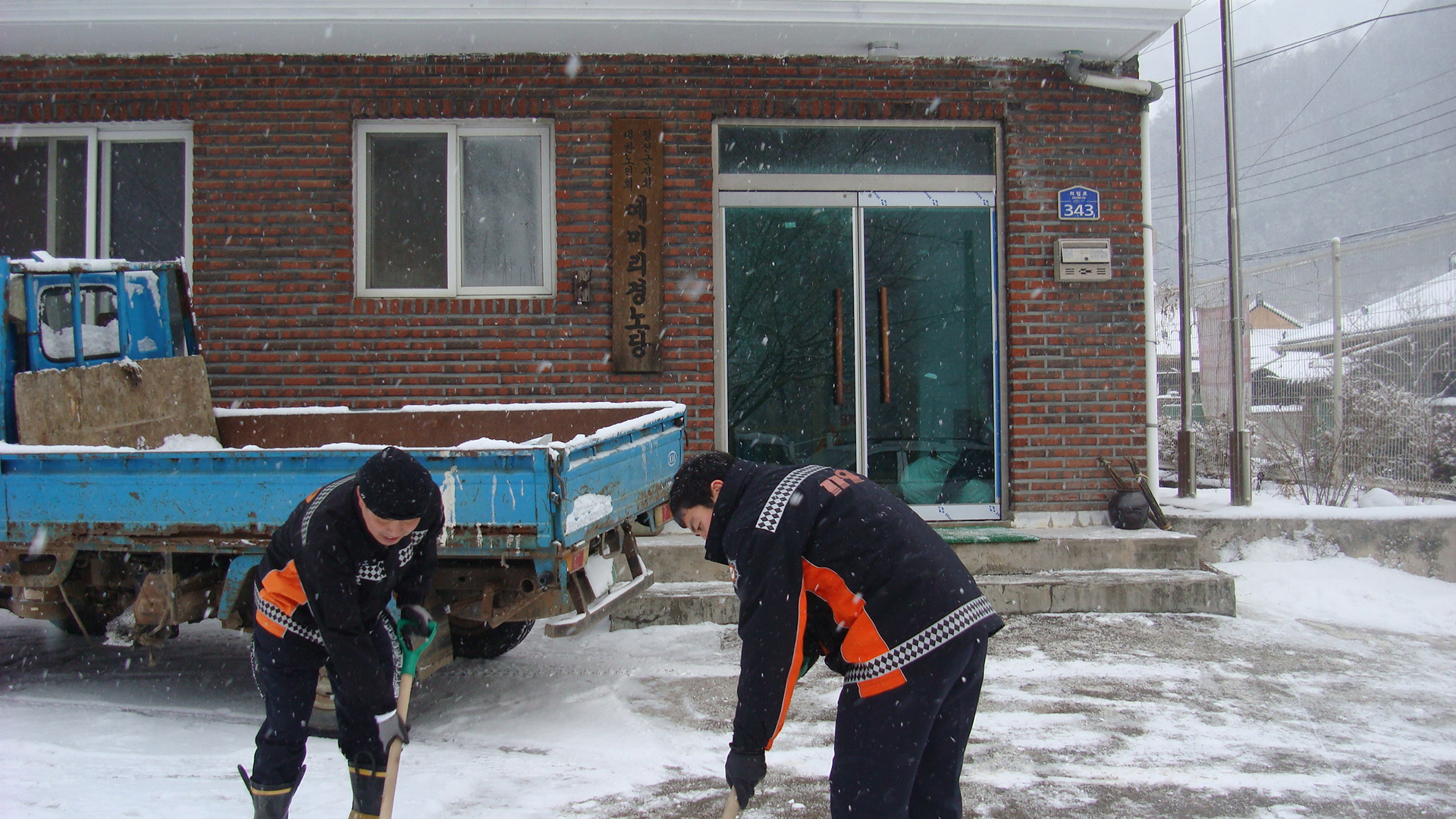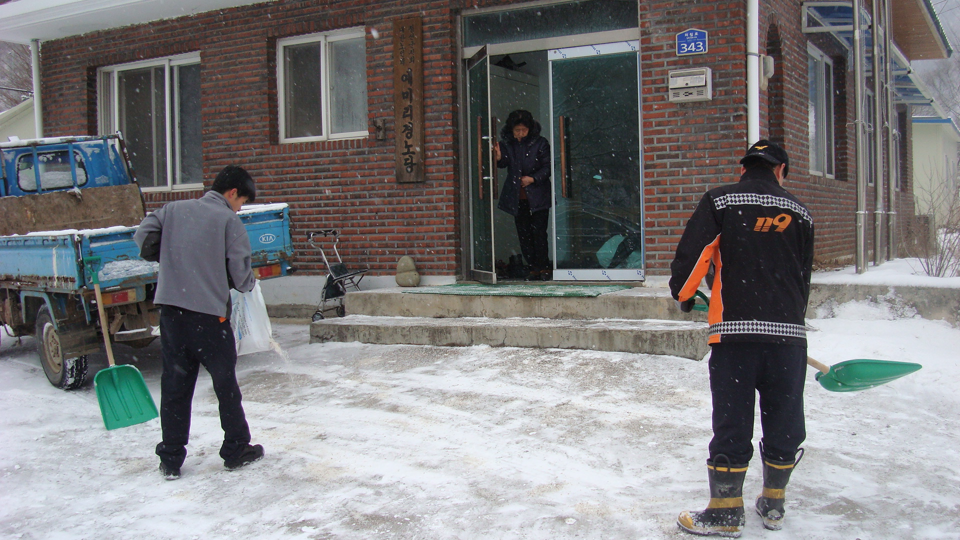 어르신들께서 다치시지 않도록 눈과 염화칼슘을 뿌렸습니다