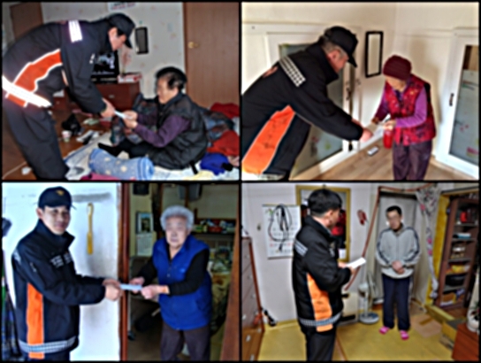 정선소방서(서장 주항중)는 1.23(목) 민속 고유명절인 설을 맞아 관내 가정형편이 어려운 6가구를 방문하고 생필품과 성금을 마련하여 소외된 이웃들에게 따뜻한 온정을 전했다.