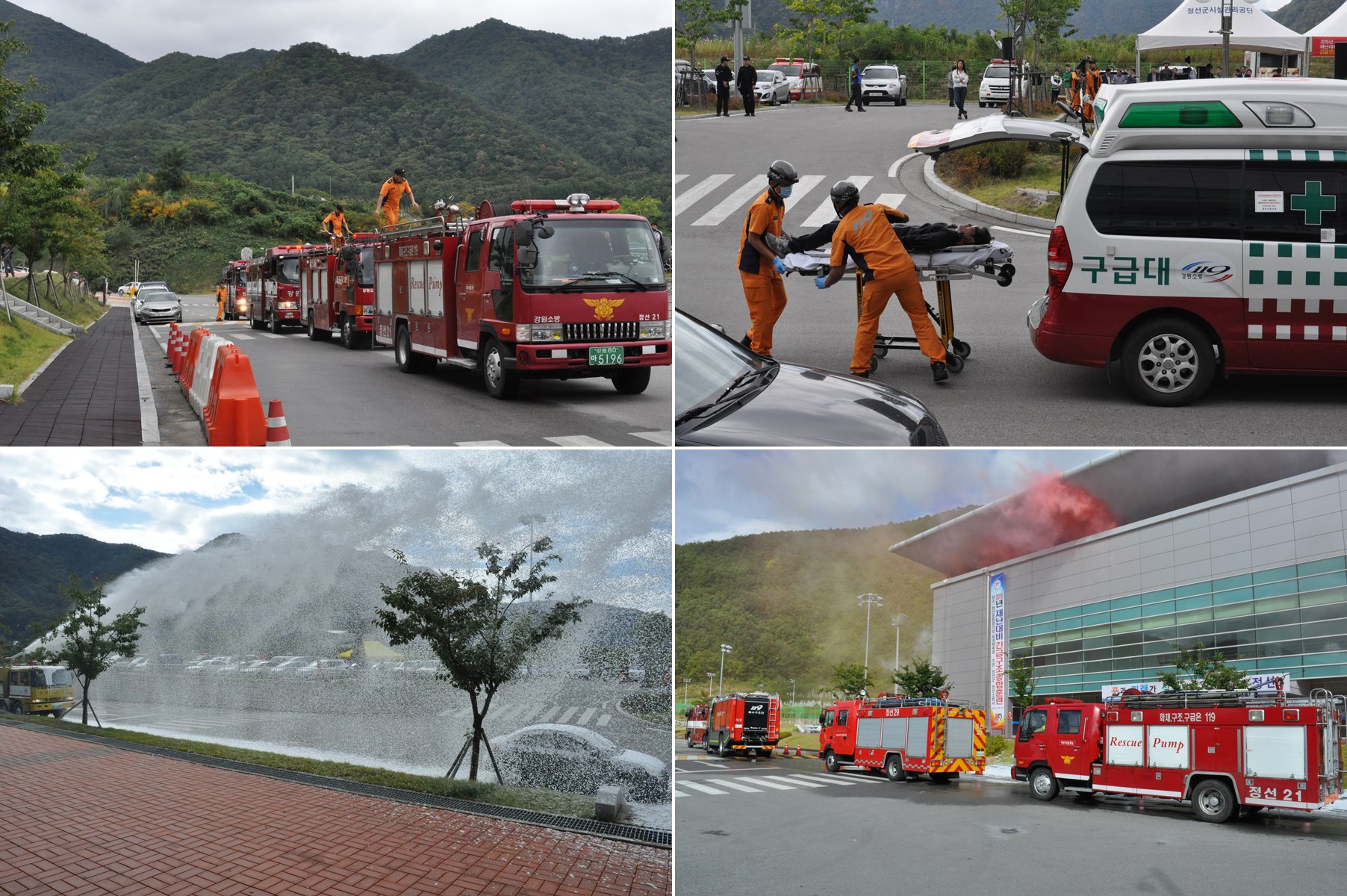 정선소방서(서장 이기중)는 9.24(목) 오후 2시에 정선종합경기장 실내체육관에서 정선군재난안전대책본부장을 비롯한 기관.단체장 도 및 군의원, 주민,학생등 300여명이 참석한 가운데 2015 재난대비 긴급 구조종합훈련을 실시했다.