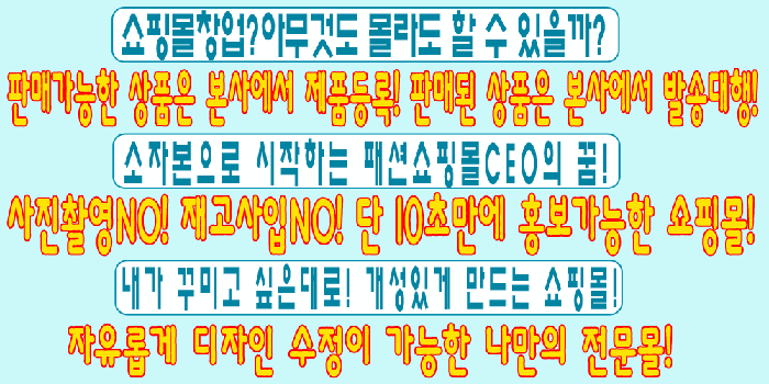 나만의 쇼핑몰 창업 서비스! 맞춤 쇼핑몰을 만들어 드립니다!