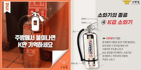 평창소방서는 주방에서 발생하는 주방 화재의 초기 진화에 효과적인 주방용 소화기, 일명 ‘K급 소화기’를 업소마다 비치해 줄 것을 당부한다고 밝혔다.