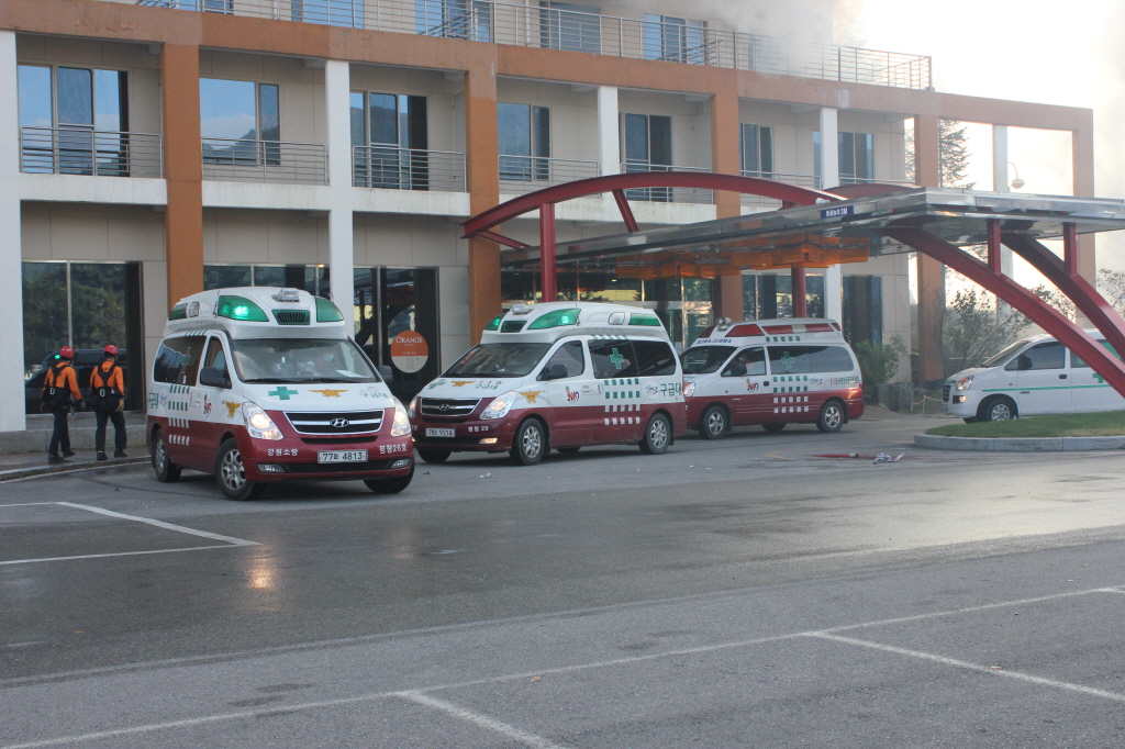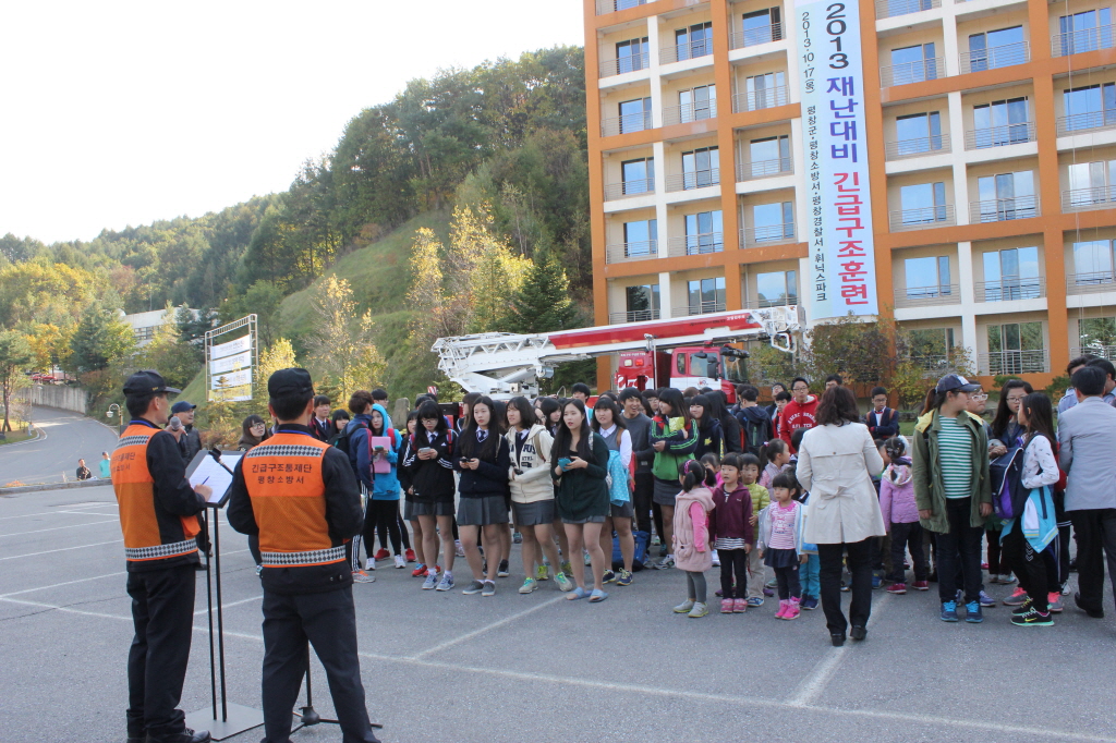 □ 2018 평창 동계올림픽 개최와 관련한 테러‧화재 등에 대비, 긴급구조 종합훈련이 17일 평창군 봉평면 보광휘닉스파크에서 소방서, 경찰, 군 등 21개 기관 300여명이 참여한 가운데 열렸다.