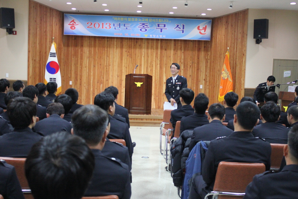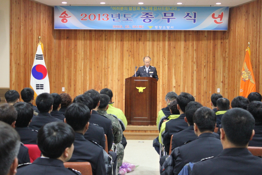 평창소방서는 서장 외 전직원 및 의용소방대원이 참석한 가운데 2014 종무식을 개최하였다.