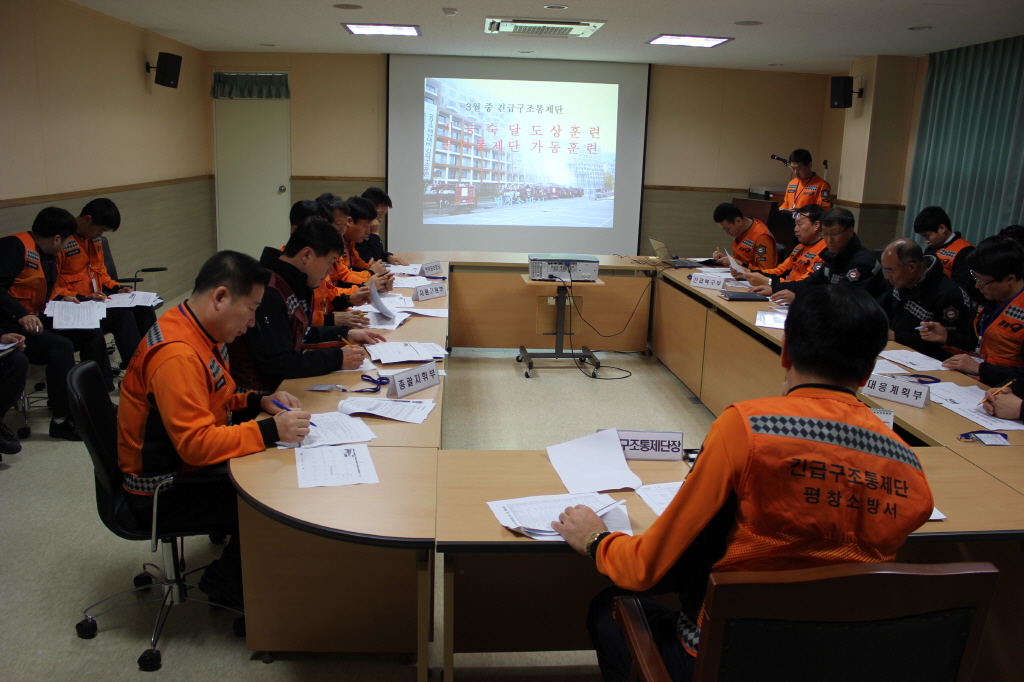 ◇ 평창소방서(서장 김남숙)는 지난 2월 경주 마우나오션 리조트 붕괴 사고 등으로 최근 대형 재난 사고 대비 현장지휘체계에 대한 중요성이 강조되고 있는 시점에서 21일 오전9시 평창소방서 2층 소회의실에서 긴급구조 통제단으로 구성된 소방공무원 30여명이 참여한 가운데 긴급구조 기능숙달 도상훈련을 실시,