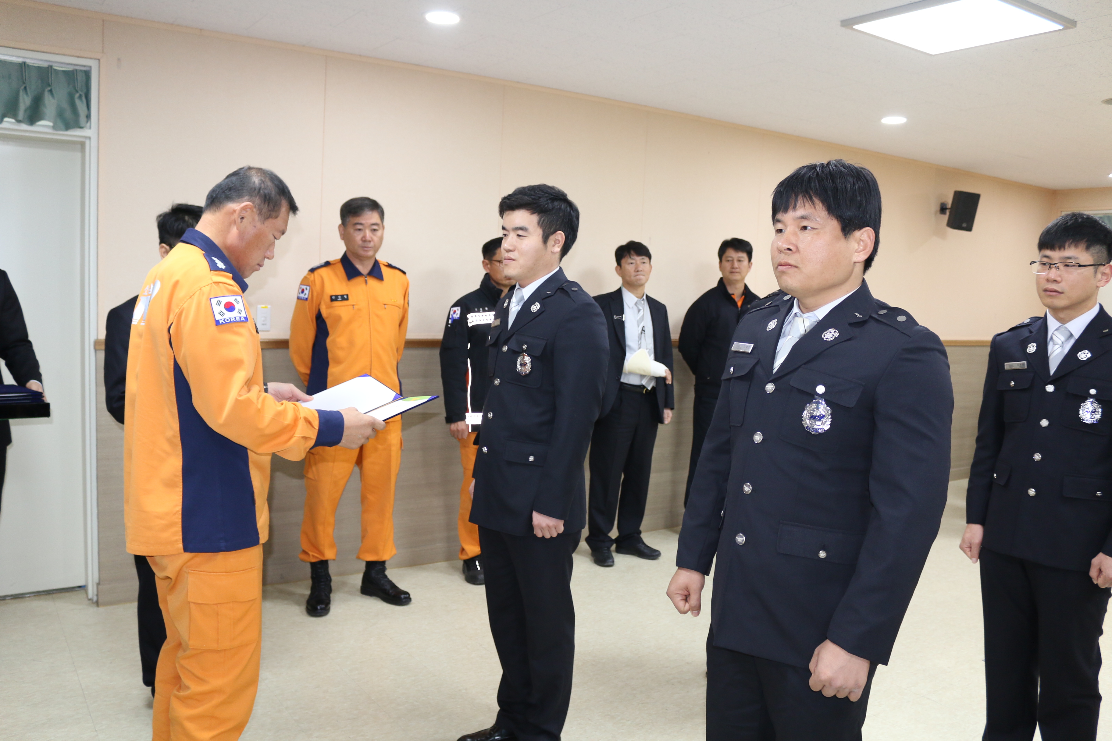 14일 오전 9시 소방서 소회의실에서 승진인사발령에 따른 임용장 수여식이 있었습니다.