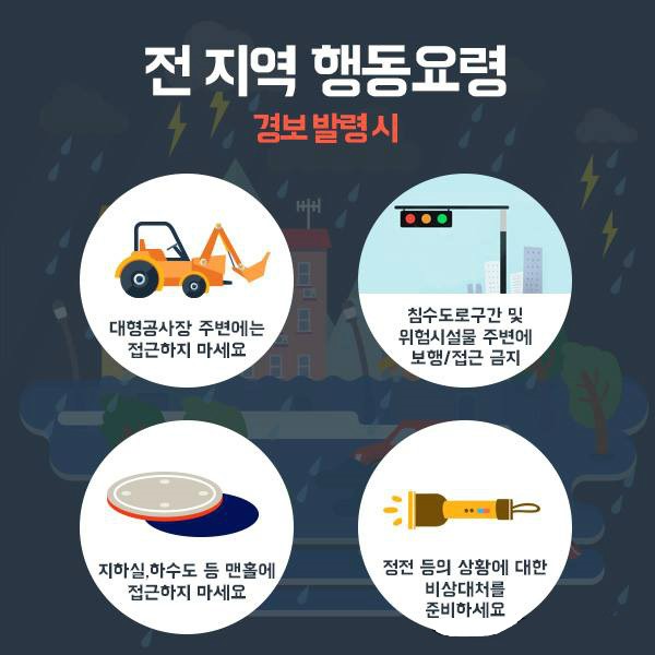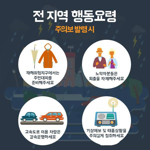 “가급적 야외활동을 자제하고 전기와 가스시설의 누전ㆍ누출 여부를 재확인하길 바란다”고 전했다.