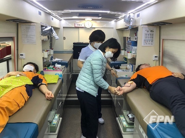 헌혈에 참여하는 직원들은 코로나19 감염 예방을 위해 부서별로 시간을 달리해 밀집도를 최소화하고 헌혈 전 마스크 착용과 손 소독 등 감염 방지를 강화하며 진행됐다.