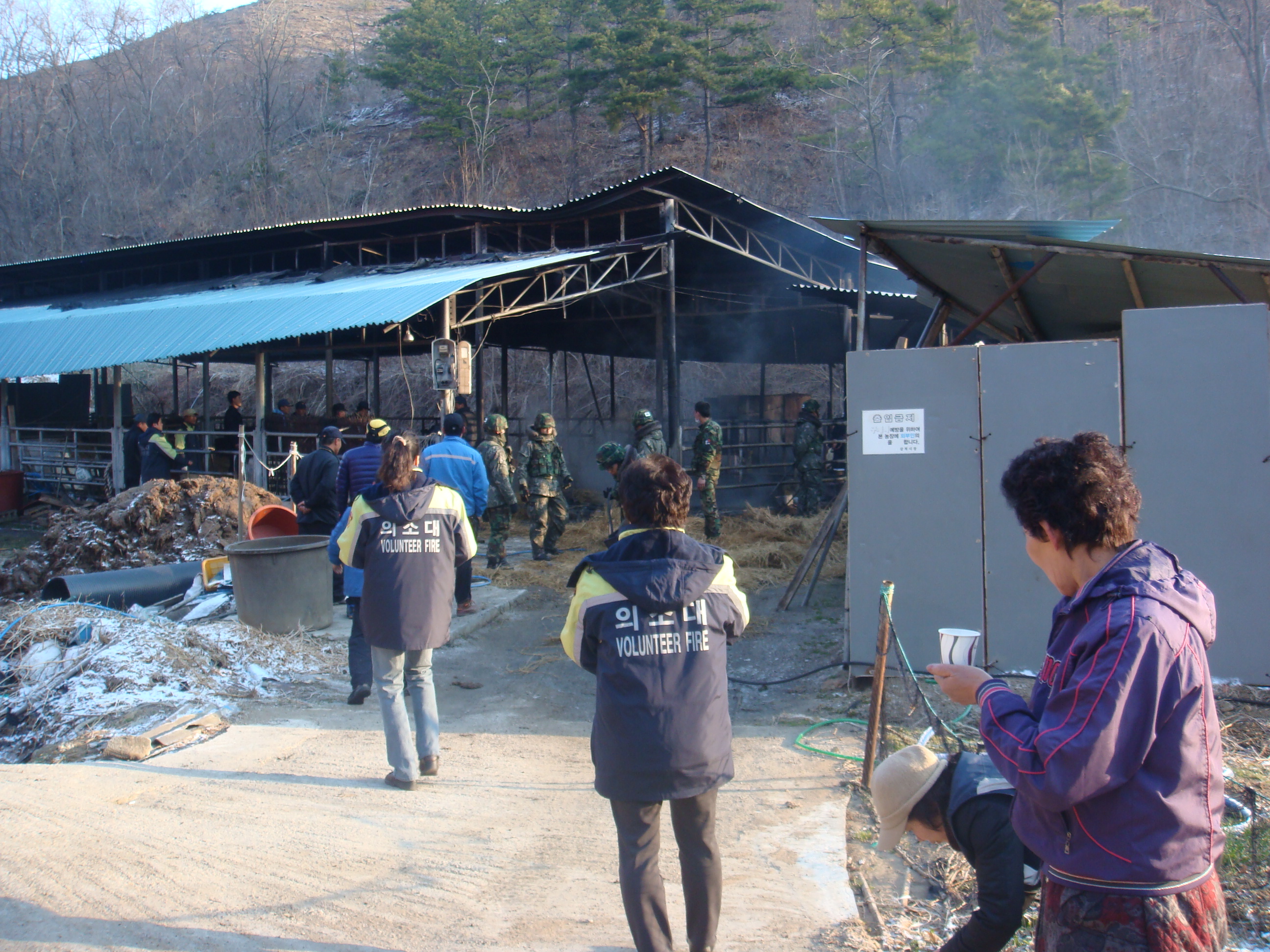 이른 아침 호산4리 최인식씨네 축사옆 짚더미에서 화재가 발생하였습니다.