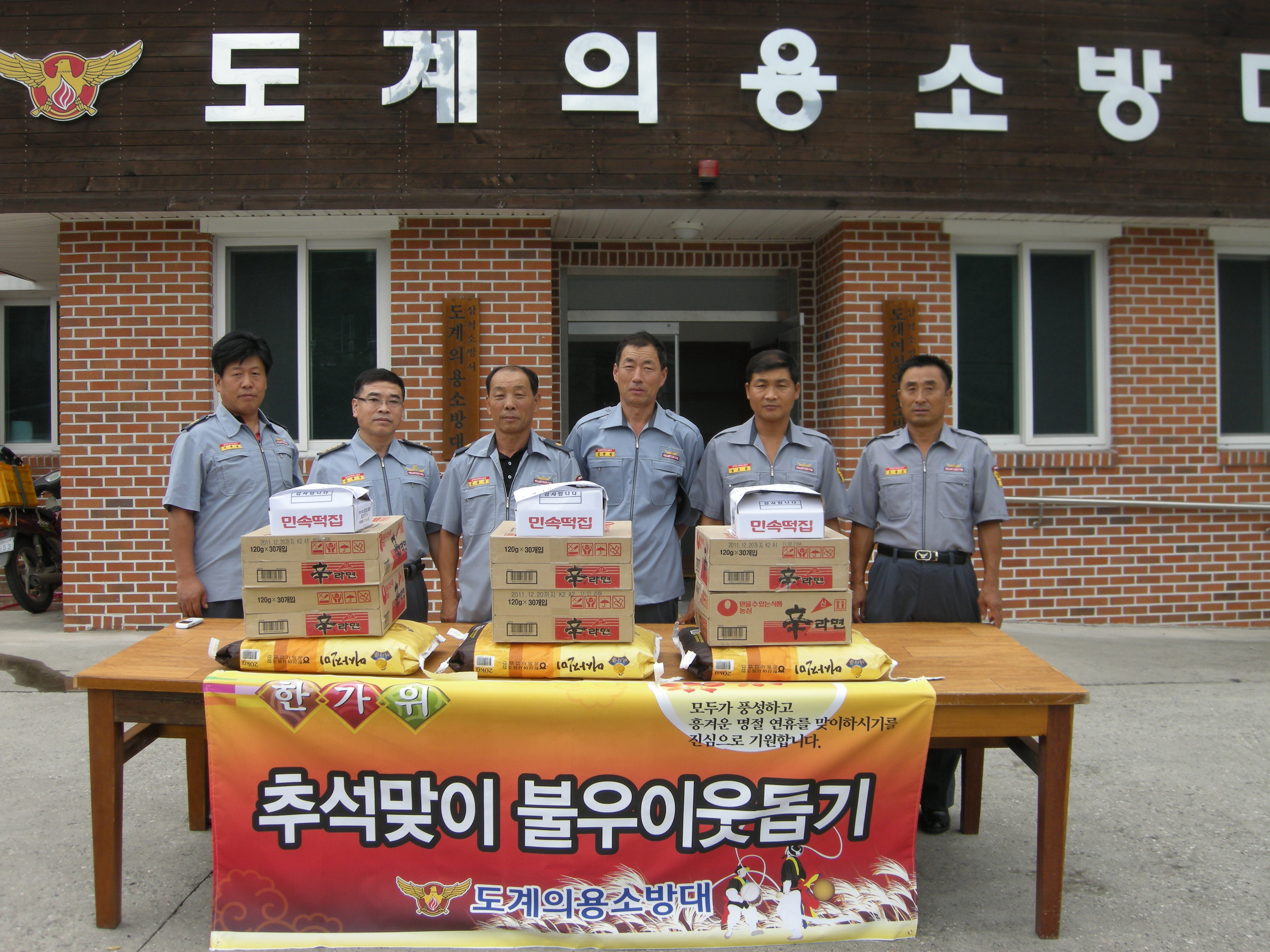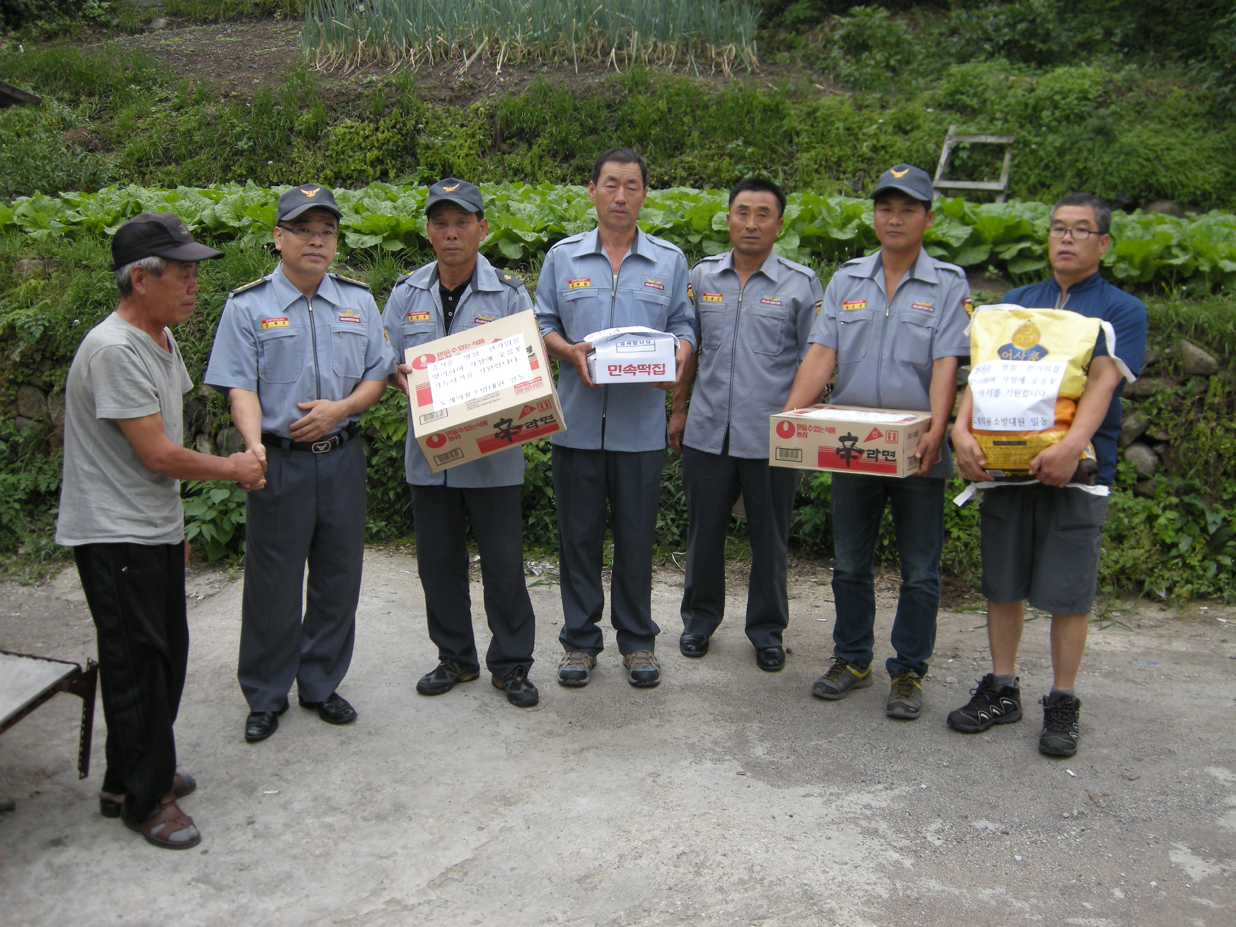기시루떡,라면 등 위문품 전달 했다.