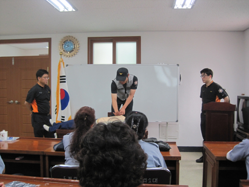 도계여성의용소방대에서는 2012년 6월 11일 14시부터 18시까지 의소대 사무실 및 관내에서 제3차 정기교육을 실시하였습니다.