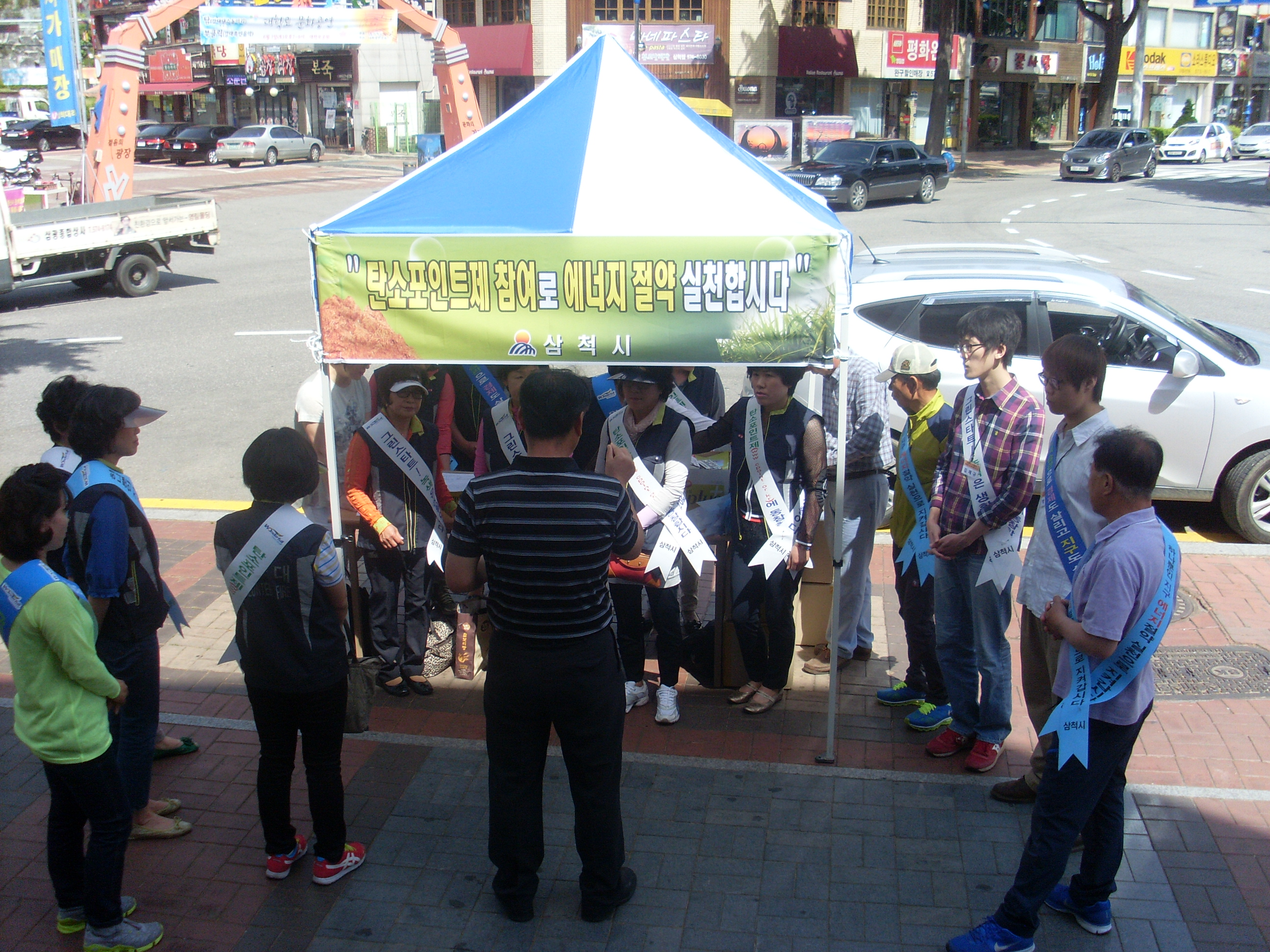 2013. 5. 31 삼척시 환경보호과에서 협조 요청하여 우체국앞에서 "탄소포인트제참여로 에너지 절약합시다". 신청서도 받으며 상가로 다니며 홍보도 많이 하였습니다. 대원들 무더위에 나오셔서 캠페인 참여 해주심에 감사드립니다.