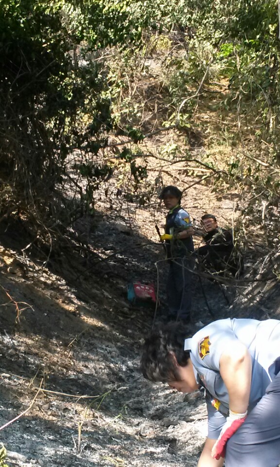 2015. 5. 21 노곡면 고자리 산불현장에서 진화보조 및 잔불정리