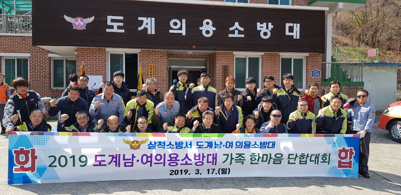 2019년3월17일 도계남.여의용소방대 사무실에서 기관단체장님들과 역대대장님들을 초대하여 가족한마음단합대회를 개최하였습니다