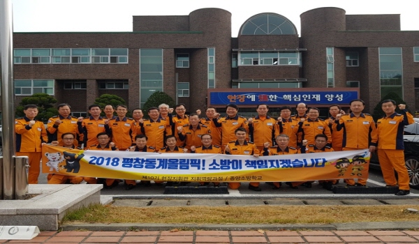 강원도 소방본부(주진복, 남궁규, 정효수 서장)는 중앙소방학교 교육과정인 제10기 현장지휘관 지휘역량과정을 수료 한 후 전국 50여 명의 소방서장들과 『2018 평창 동계올림픽』이 안전하고 성공적으로 개최되도록 전국 소방지휘관이 앞장서 소방역량을 총 동원하기로 다짐했다.