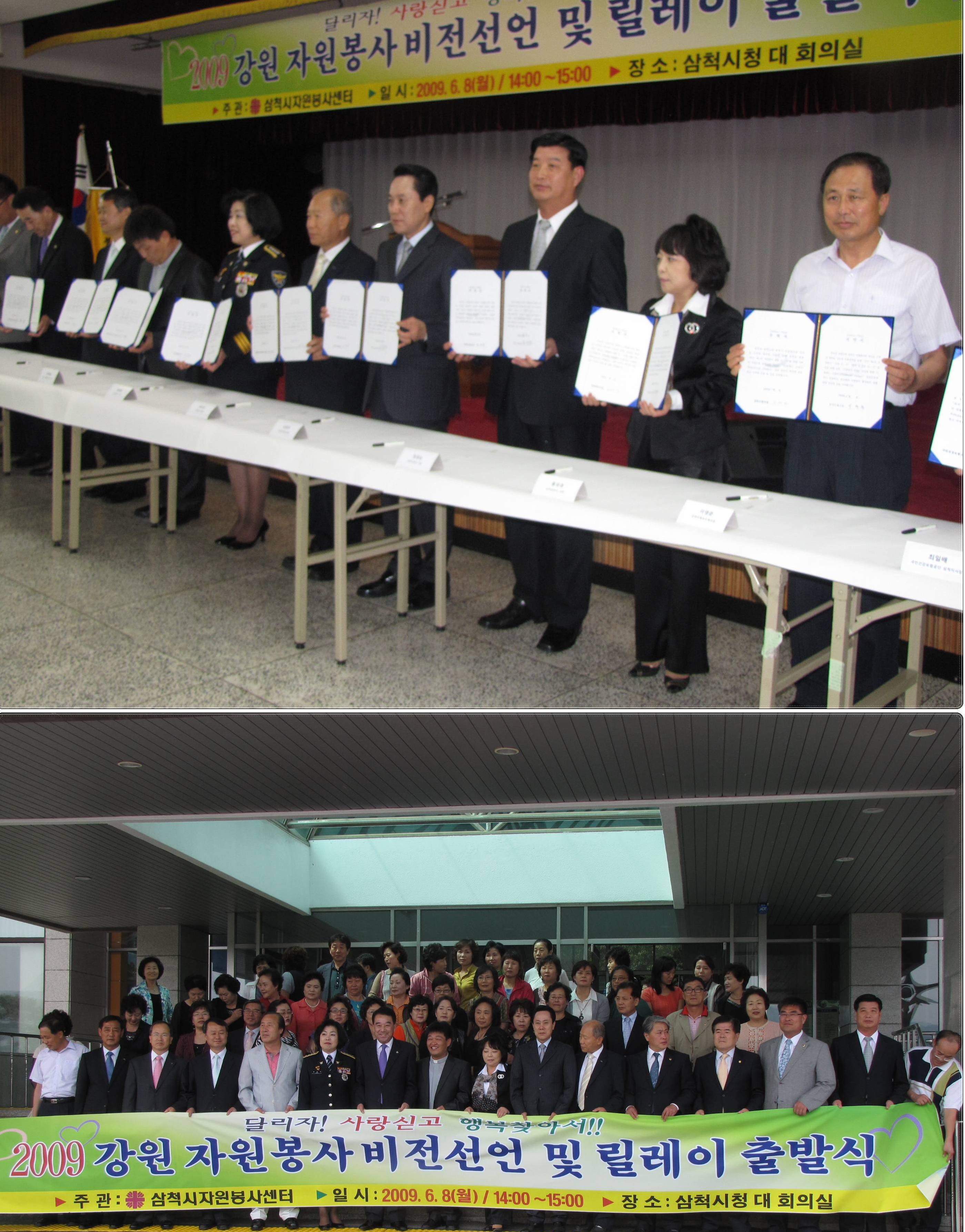 정경남 삼척소방서장은 6월 8일(월) 오후 삼척시청에서 열린 2009 삼척자원봉사 비전 선언 및 릴레이 출발식에 참석하여 노블레스 오블리주 서약서에 서약하고 지역 자원봉사 활동화에 적극 동참하기로 다짐했다.