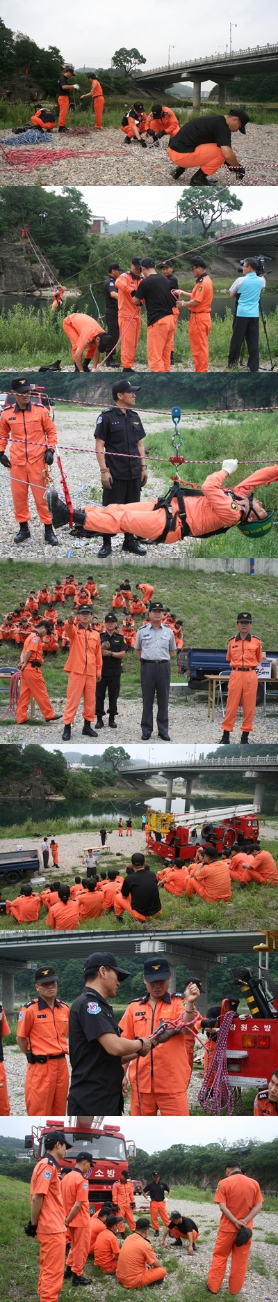 삼척소방서(서장 정경남)는 6. 16. 10시경 오십천 둔치에서 여름철 집중호우, 태풍 및 물놀이 등으로 인한 재난사고 발생에 대비하여 신속한 인명구조 및 구조능력을 배양하고자 전직원을 대상으로 로프매듭법, 계곡고립 요구조자 구조방법 등 수난구조 훈련을 실시함