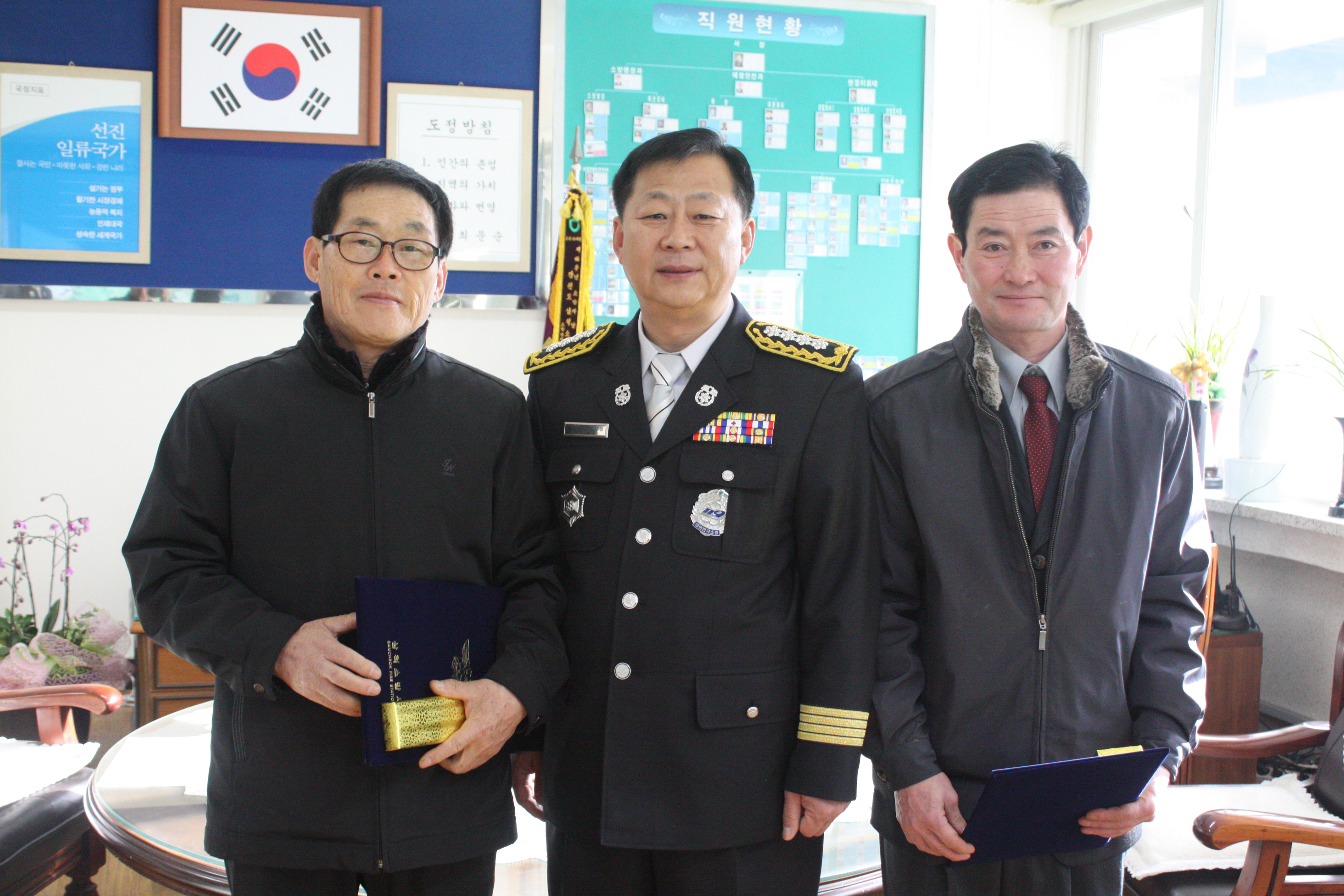 2월 7일 오전 화재저감에 힘써주신 민간 유공자 표창 수여식이 서장실에서 있었습니다.