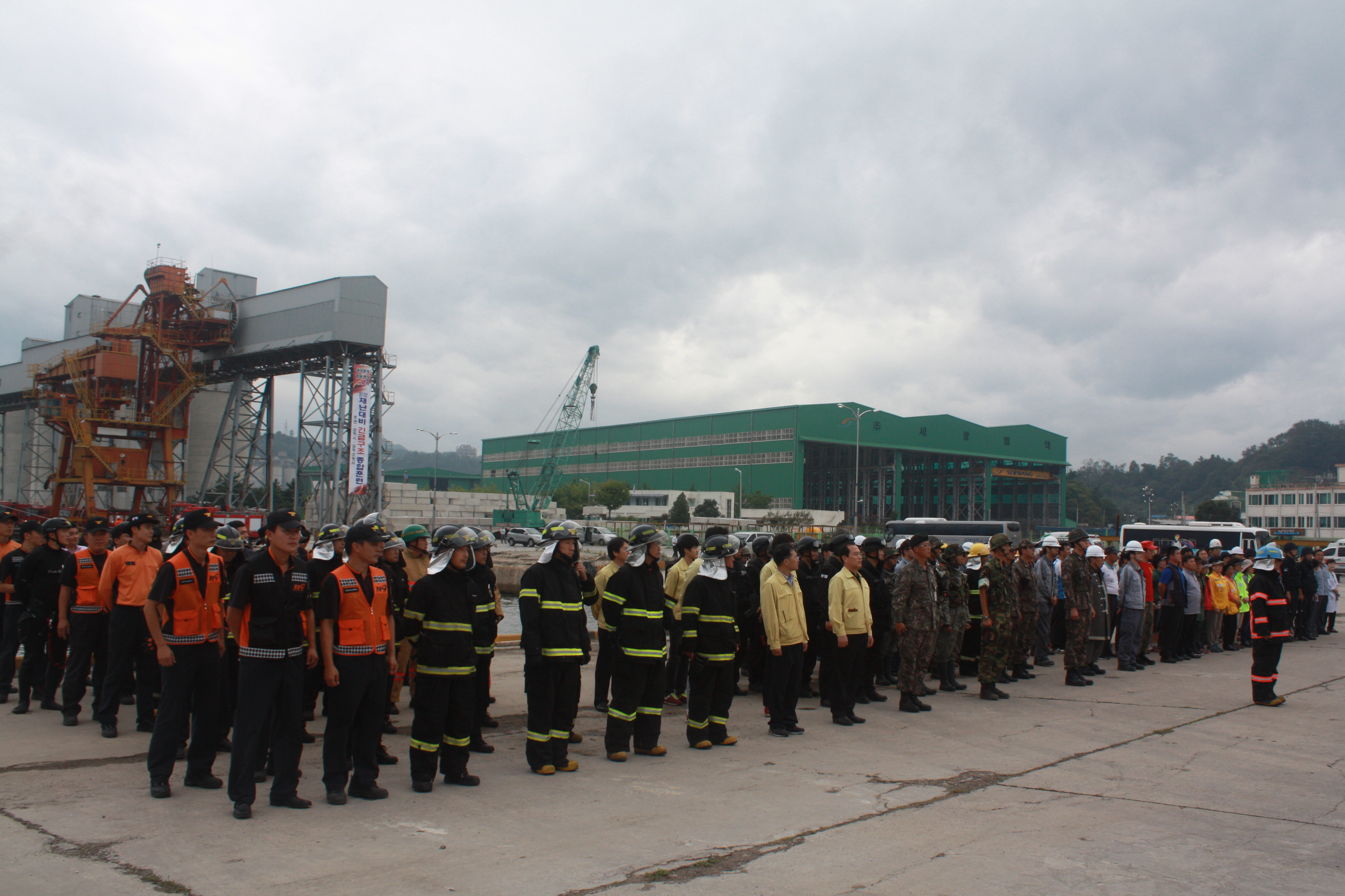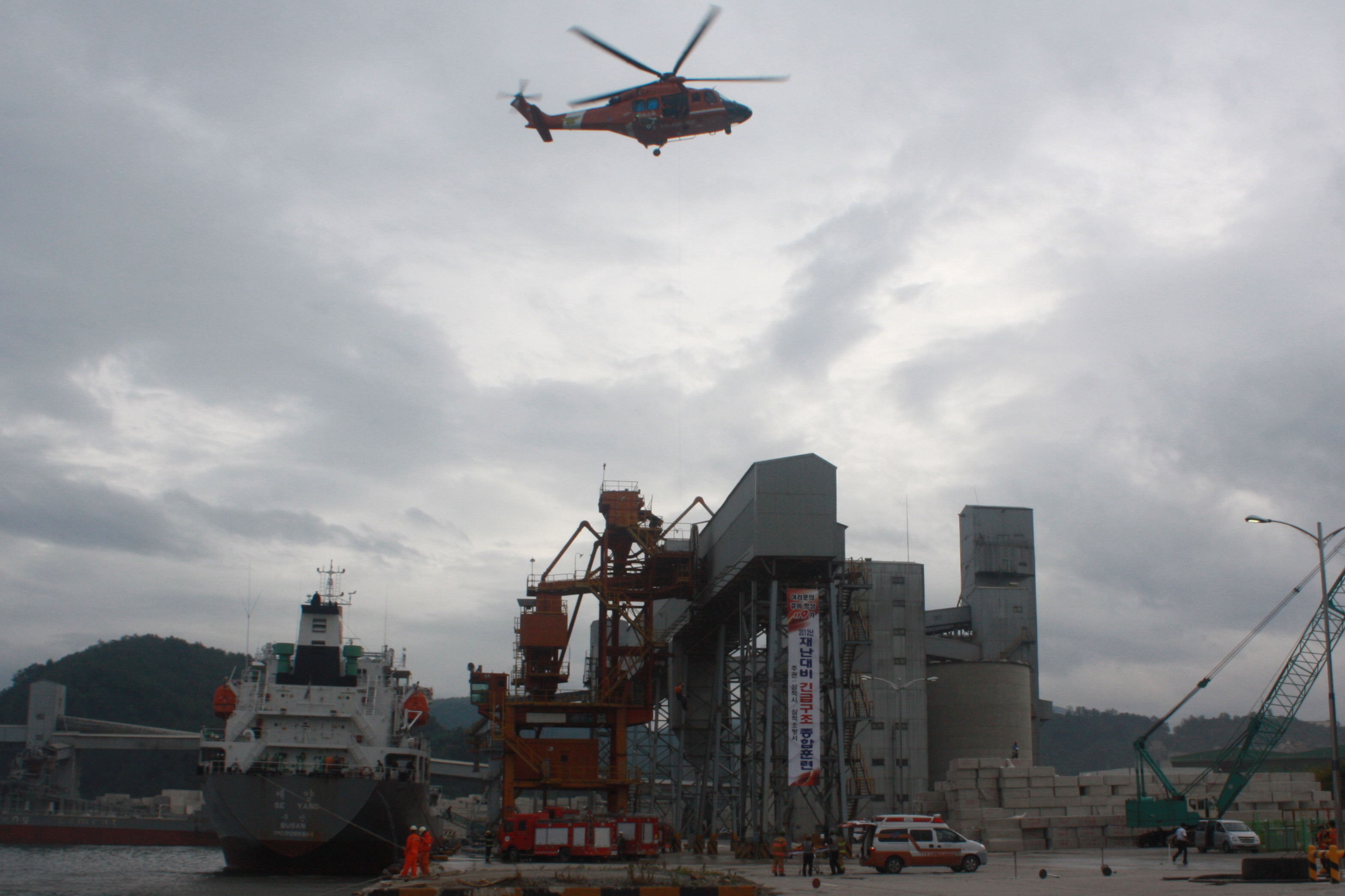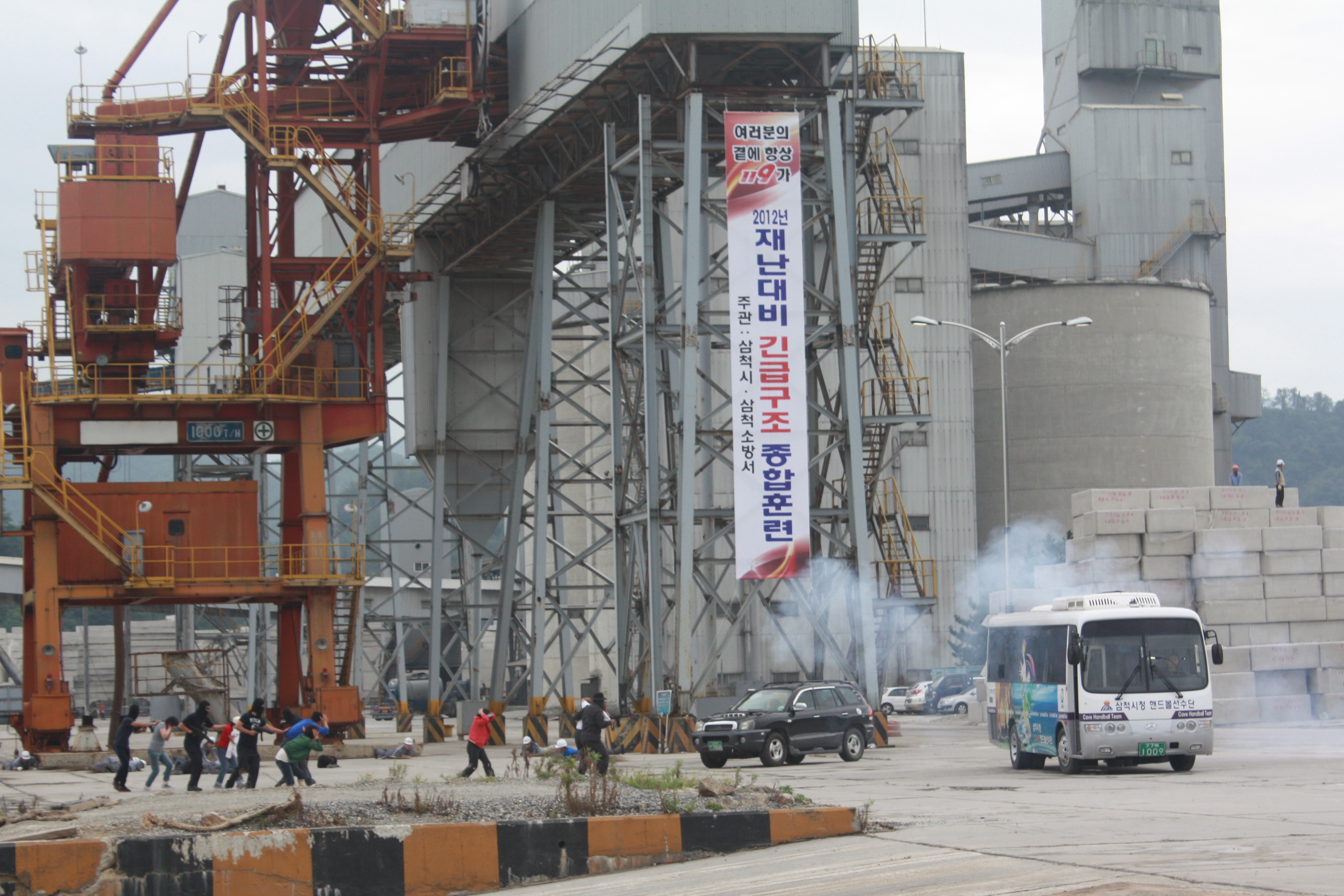 2012. 9. 13일 14시 30분에 삼척시 정라동 삼척항 제2부두에서 대형재난에 신속하게 대응하고 긴급인명구조 체계정립 및 재난현장 수습능력 배양을 위한 2012년 대형재난대비 긴급구조종합훈련을 실시했다.