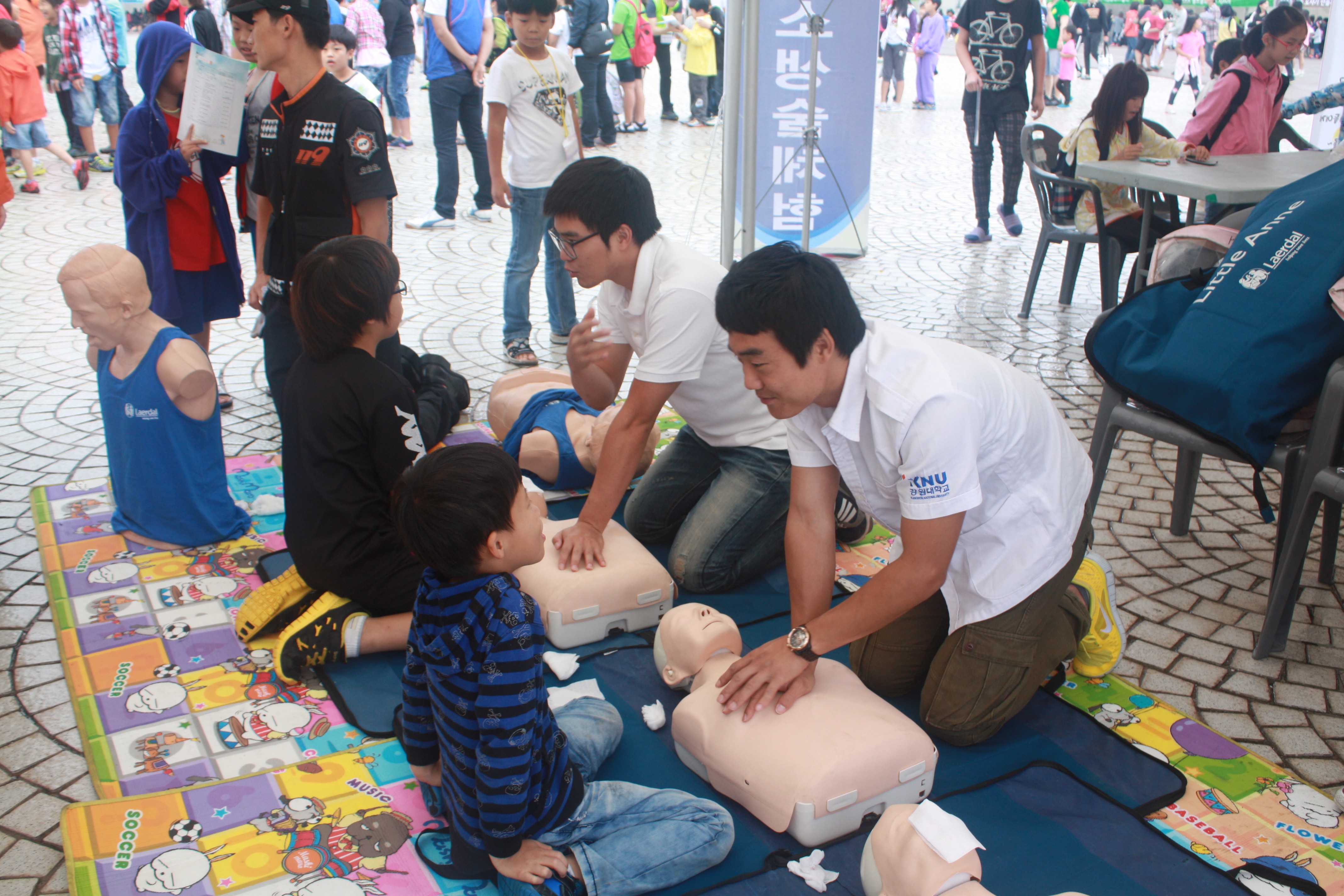 제 6회 강원도 지역 아동센터 축제한마당이 지난 15일 아침 10시부터 16시까지 삼척문화예술회관 앞에서 열렸다. 강원도 지역아동 센터 학생 2000여명을 대상으로 한 이번 축제에 삼척소방서(서장 이지만) 는 이동안전체험 차량을 이용하여 지진체험 및 연기체험 활동을 제공하고, 물소화기 체험, 심폐소생술 교육 및 핸들러와 구조견 체험활동 등 다양한 소방안전교육 기회를 제공하여 직접체험하고 접해볼수 있는 유익한 체험의 장을 마련하였다.