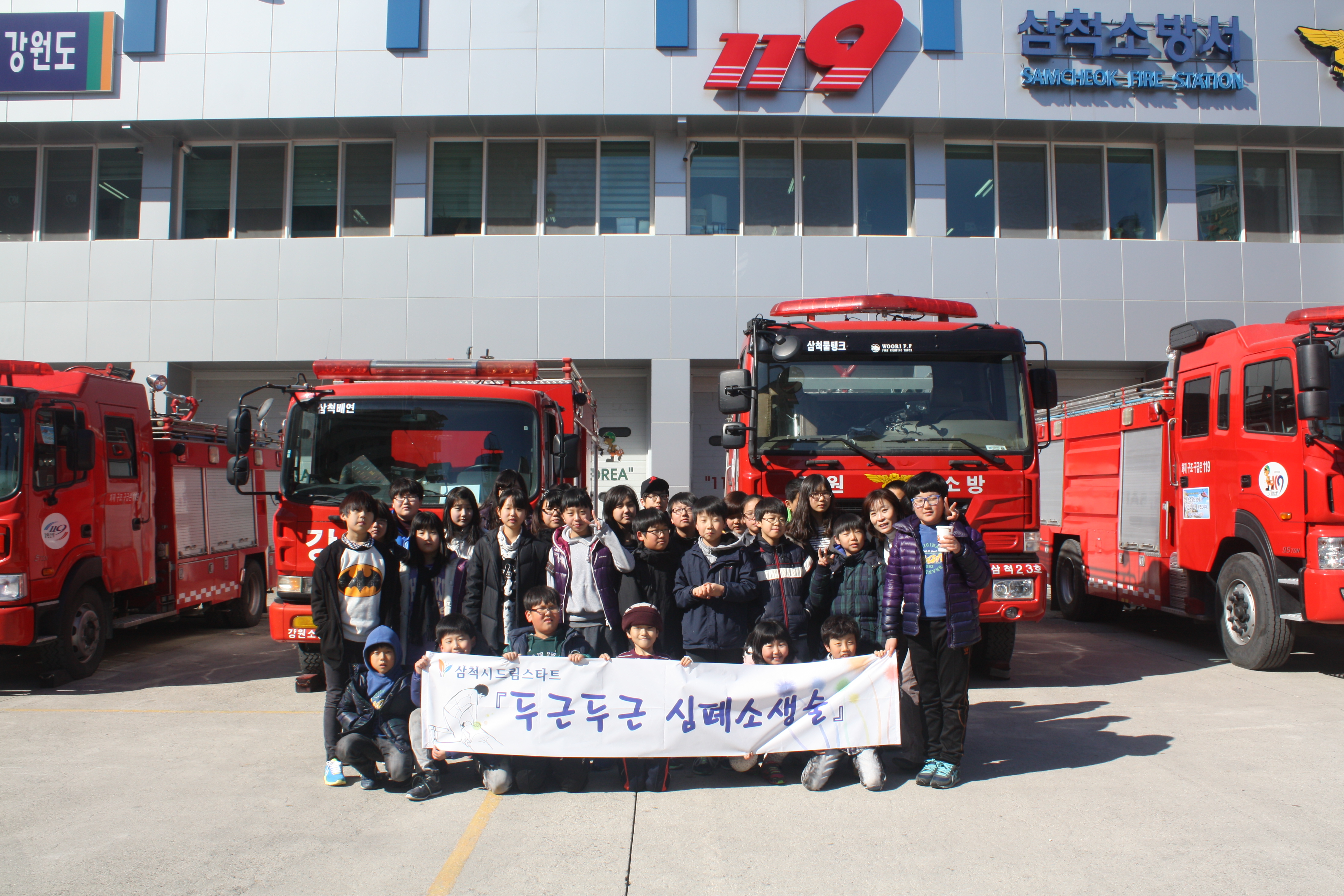 ▲ 삼척소방서에서는 2013년 2월 20일 10시부터 드림스타트 대상 아동 30명과 소방안전교육 및 CPR 체험활동을 실시하였다. 또한 삼척시 사회복지과 드림스타트 담당자를 CPR 홍보대사로 위촉하여 심폐소생술 전파에 힘써줄 것을 당부했다.