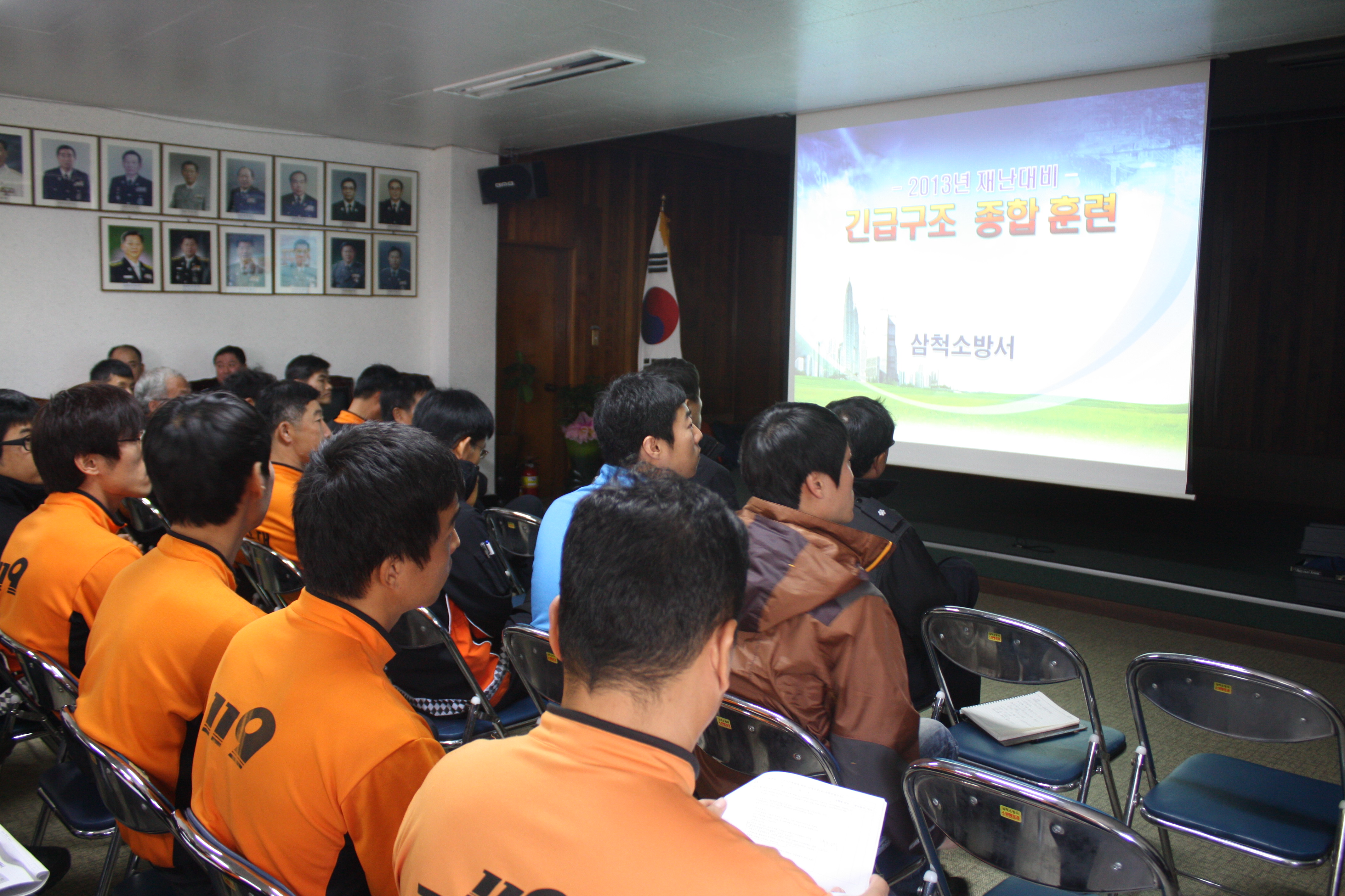 2013년 10월 29일 10시부터 소방서 2층 대회의실에서 출동 대기자를 제외한 삼척소방서 전 직원이 참석한 가운데 긴급구조 종합훈련의 성공적인 개최를 위한 도상훈련을 실시했다.