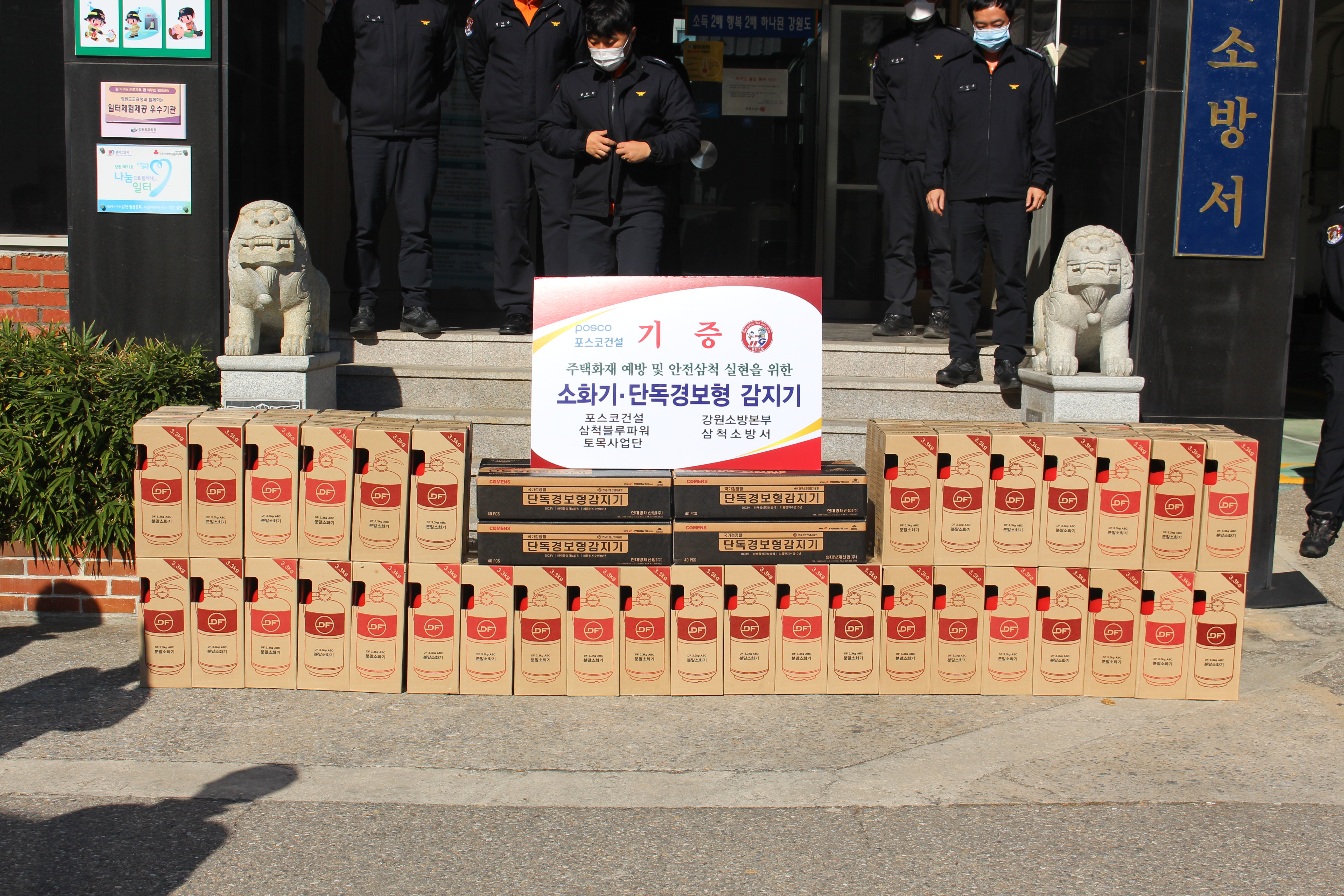 삼척소방서-포스코건설 삼척블루파워, 주택용 기초소방시설 기증식 가져