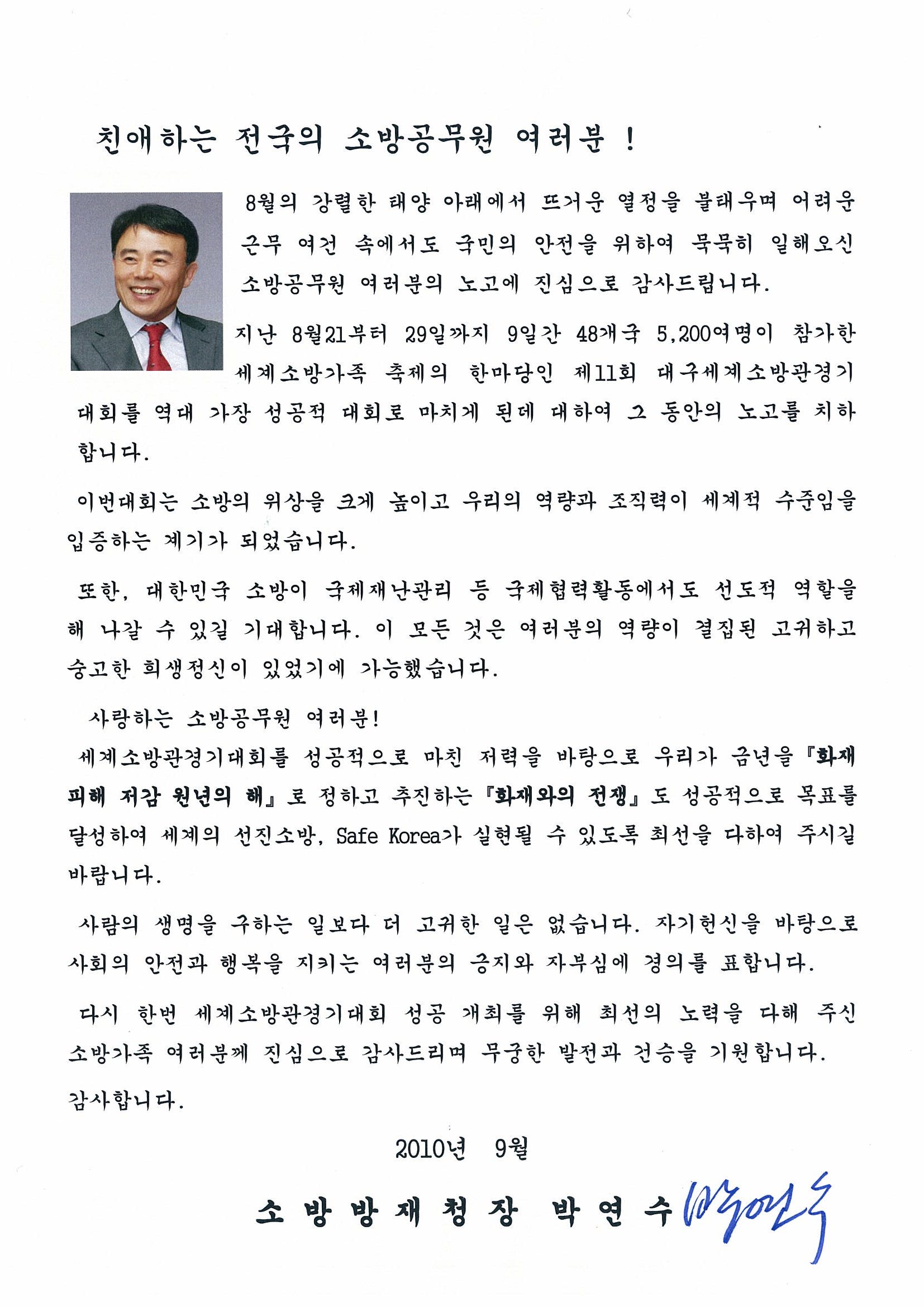 2010. 9. 3 박연수 소방방재청장 인사말