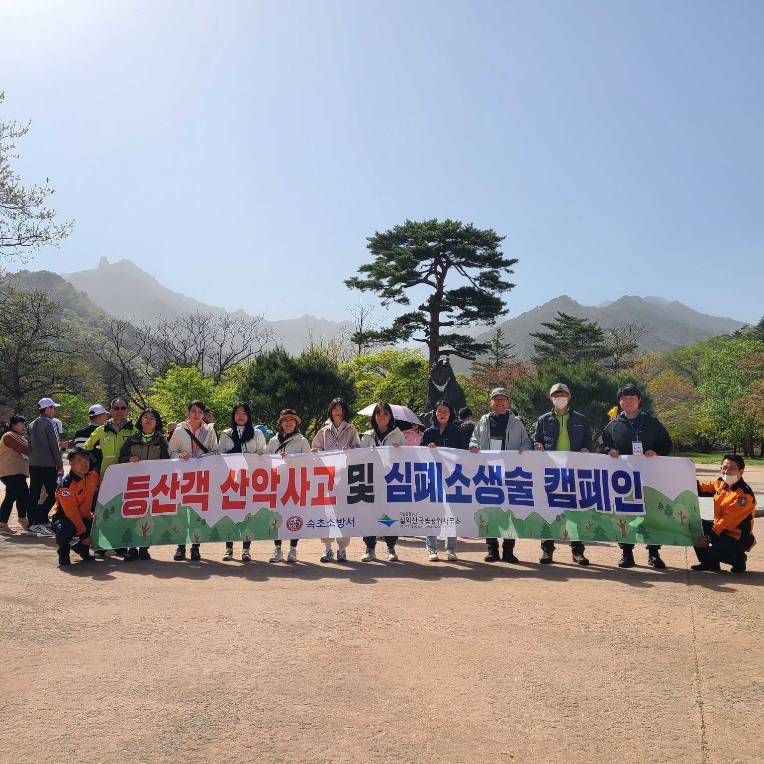 12일 설악산 소공원에서 설악산국립공단사무소와 함께 산악사고 캠페인 및 소방안전교육을 실시하였다.