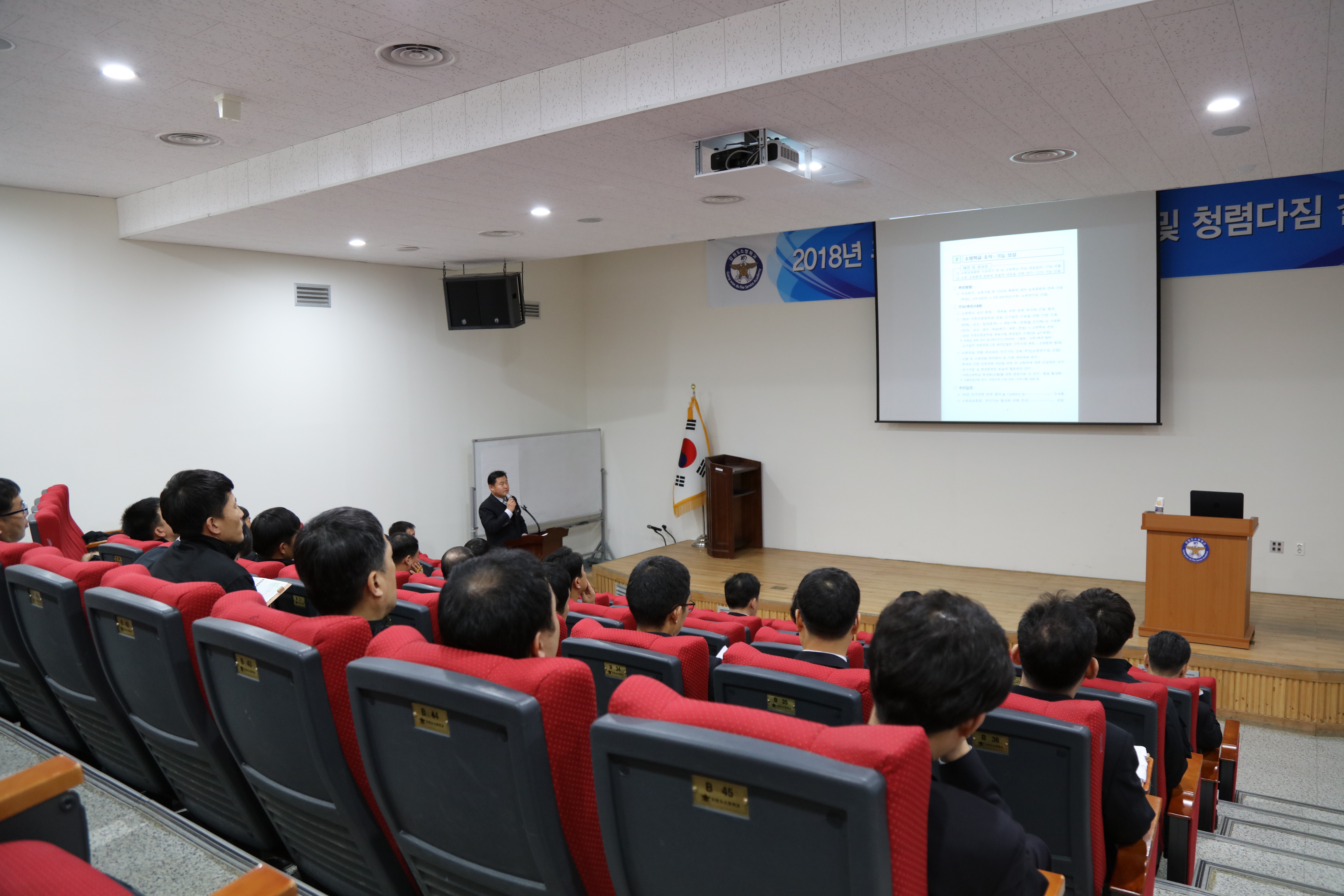 공정하고 투명한 조직 분위기 조성과 청렴․친절문화 정착을 위한 결의를 다지고 공직기강확립과 주요 업무추진계획 공유 및 2018년 소방학교 교육운영 성공다짐을 위한 행사가 소방학교 대강의실에서 실시되었습니다.