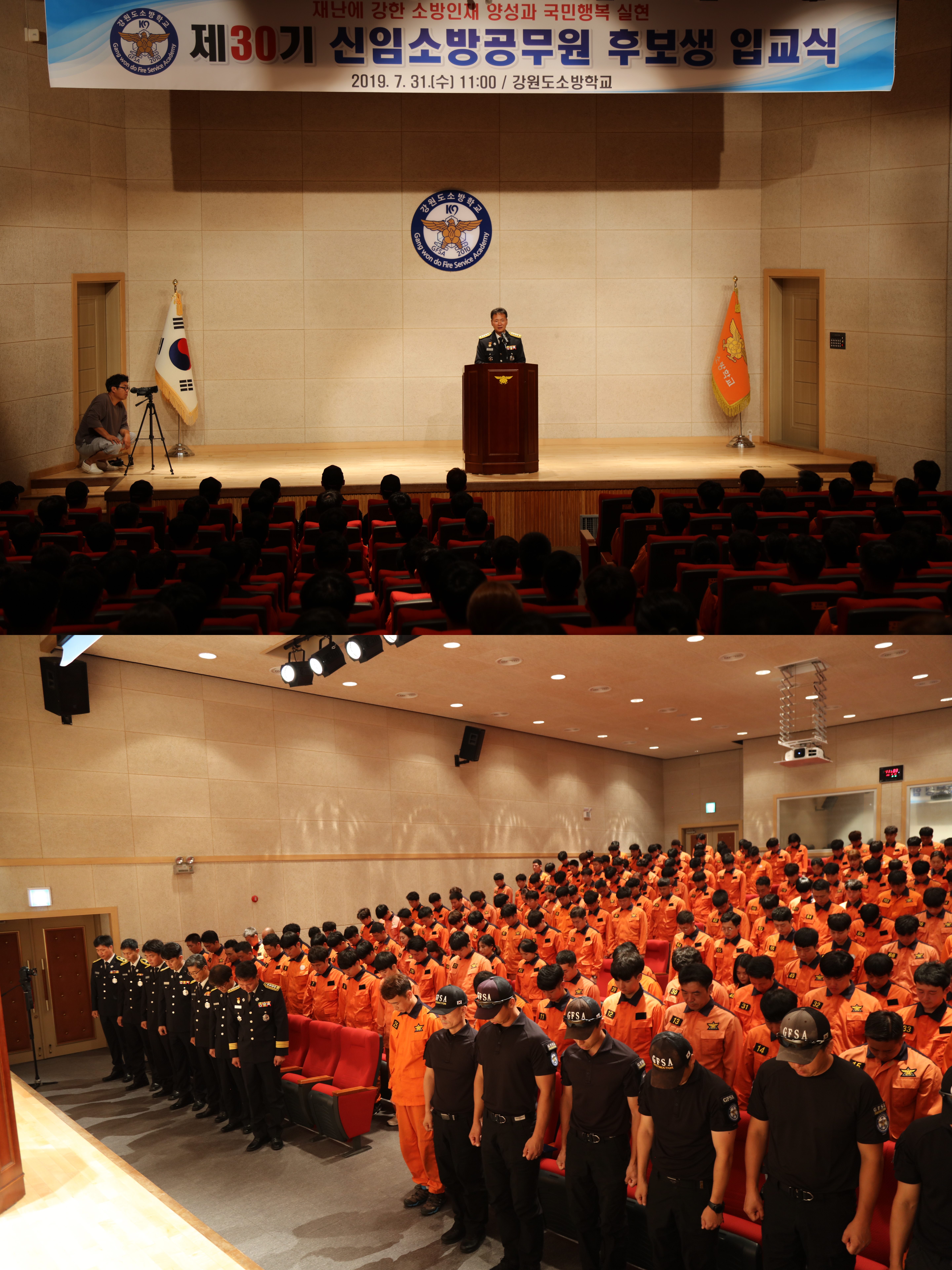 2019년 7월 31일 강원도소방학교 대강당에서 교직원들과 제30기 교육생 189명이 참여한 가운데 입교식이 거행되었습니다.