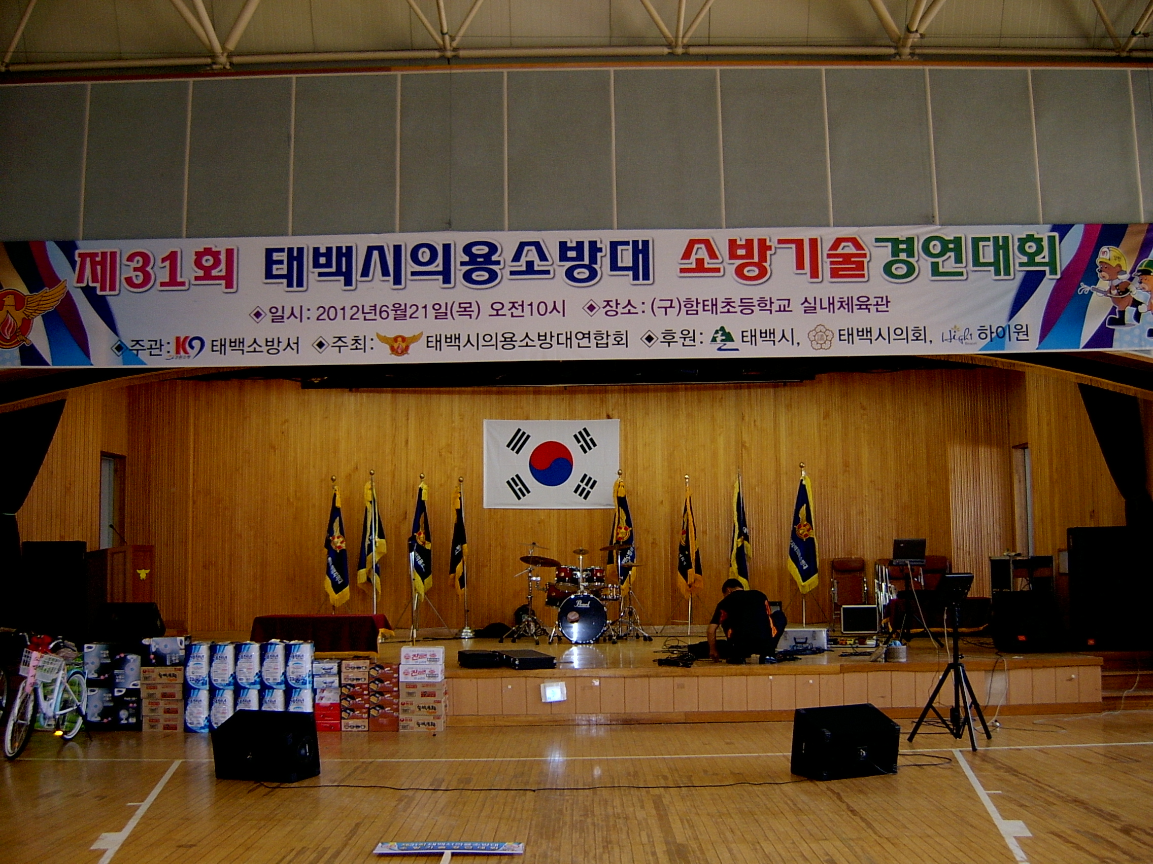 6월21일(구)함태초등학교에서 태백시의용소방대(8개대)기술경연대회및 체육행사가 내외귀빈들과가족들이 참석한 가운데 뜻깊은 하루를 보내면서 다시한번 지역 지킴이의 구심적 역활을 다짐했다 .