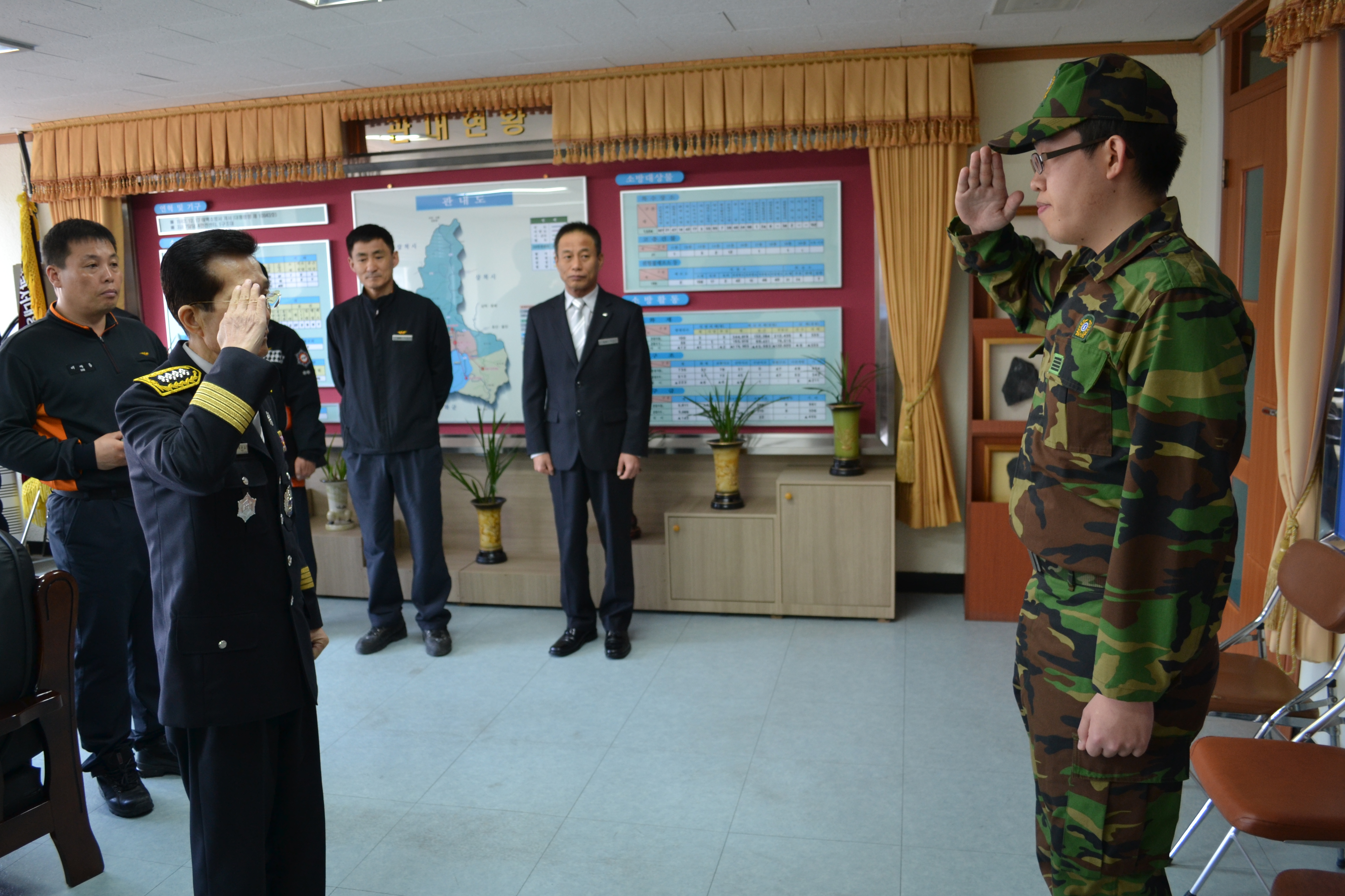 태백소방서(서장 여윤길)는 17일(화) 소방서 2층 서장실에서 직원 10여명이 참석한 가운데 의무소방원 수방 최승환에 대한 전역식을 갖고 기념촬영을 하였다.