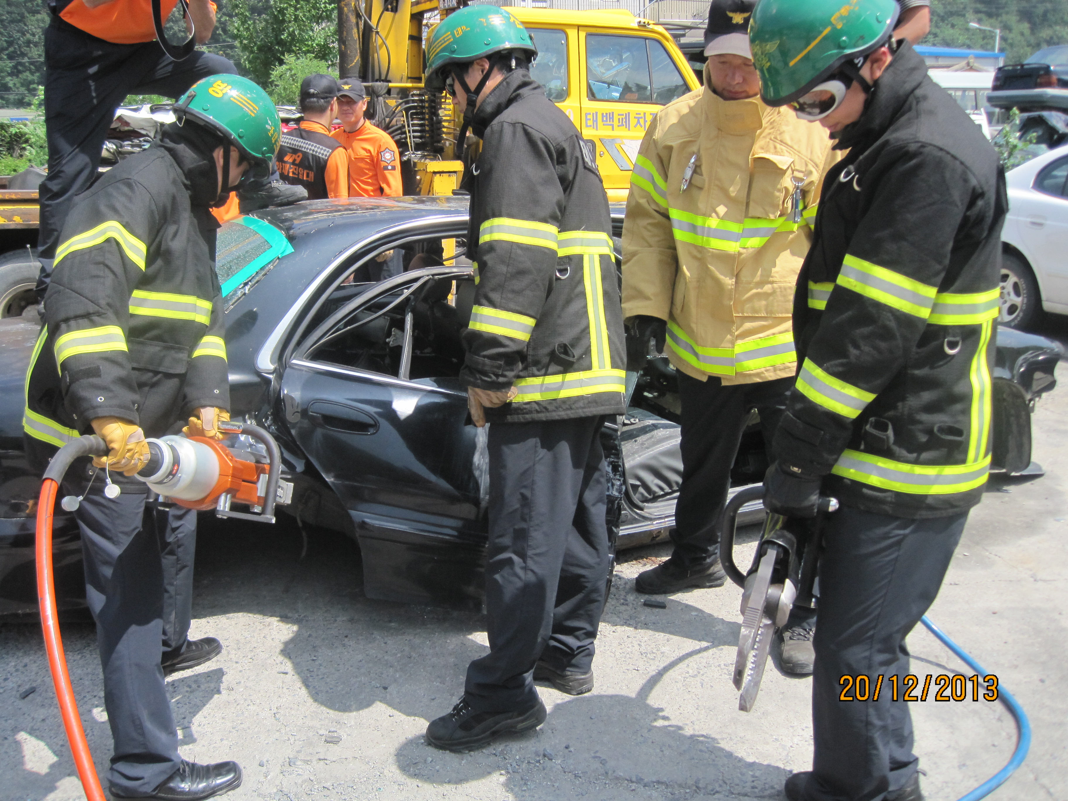 태백소방서(서장 이동학)는 여름 휴가철을 맞아 여행객들의 교통사고가 빈번히 발생함에 따라 26일(금) 오전 10시 태백시 화전동 소재 화전폐차장에서 교통사고 대비 인명구조훈련을 실시했다.